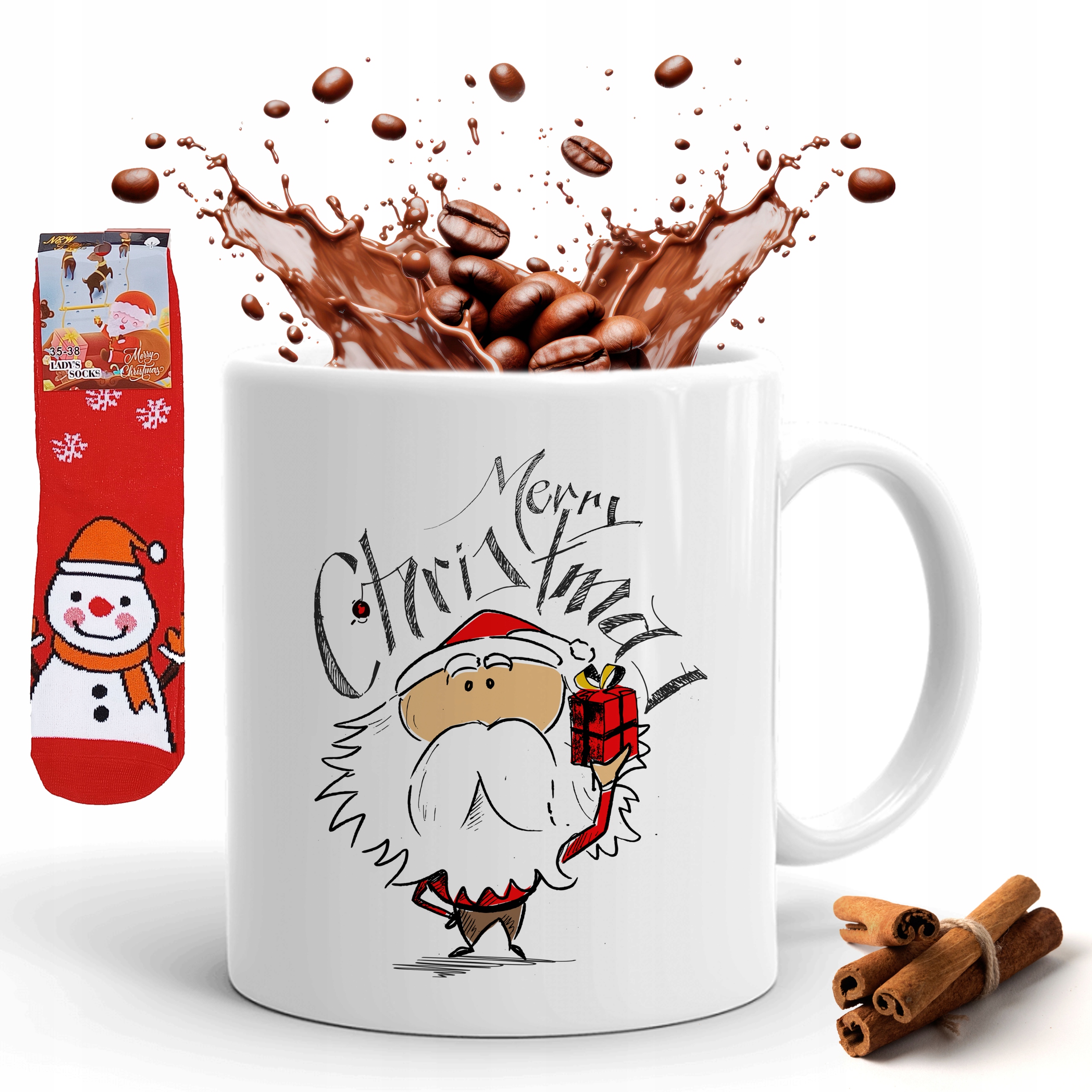 Кружка Рождественский подарок, продаваемая в наборе с носками, станет отличной идеей подарка для всем, независимо от возраста.