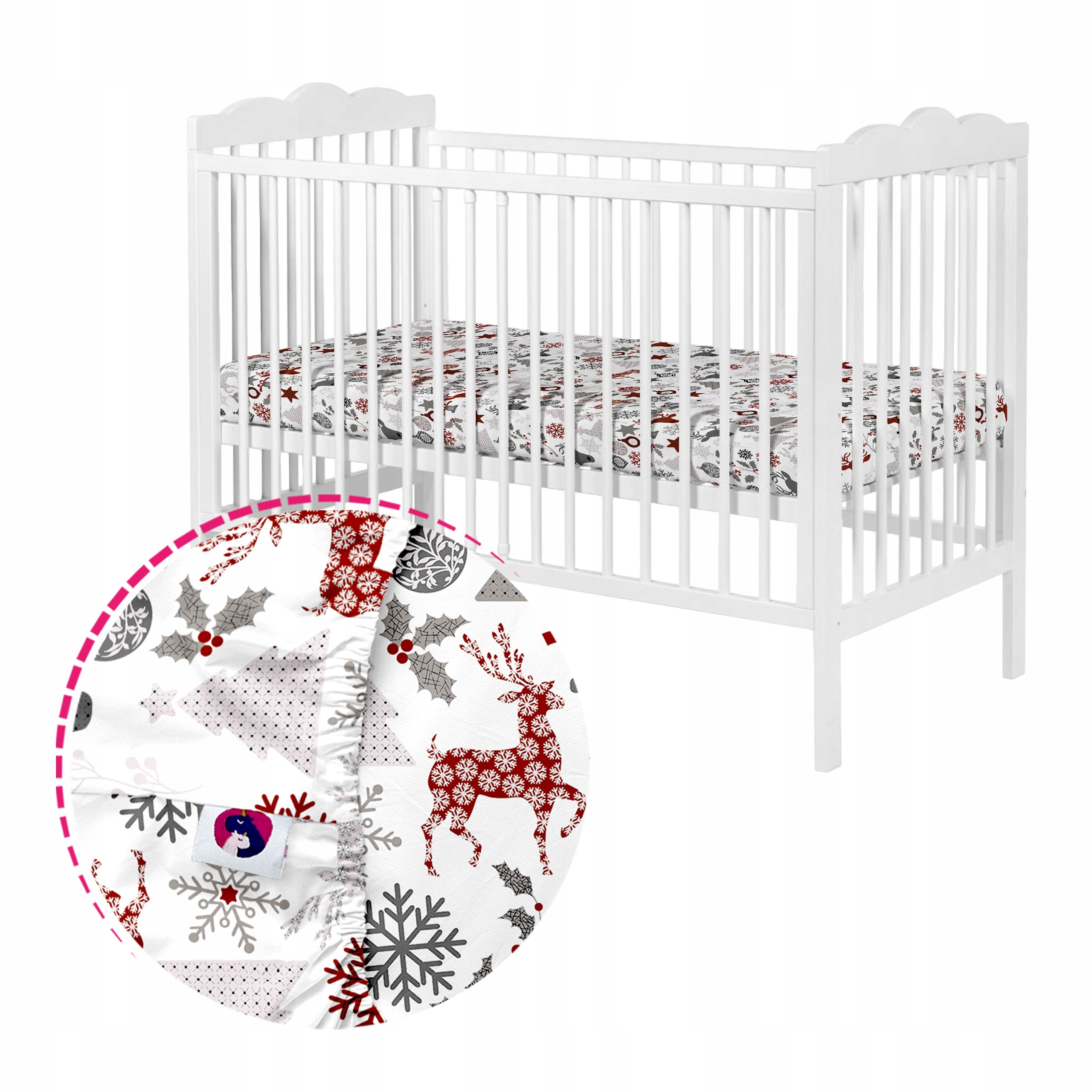 ПРОЖЕСТВЕННАЯ ПРОСТЫНКА 140х70 ДЛЯ ДЕТСКОЙ кроватки НА РЕЗИНКЕ, ХЛОПКОВЫЕ ЗИМНИЕ УЗОРЫ