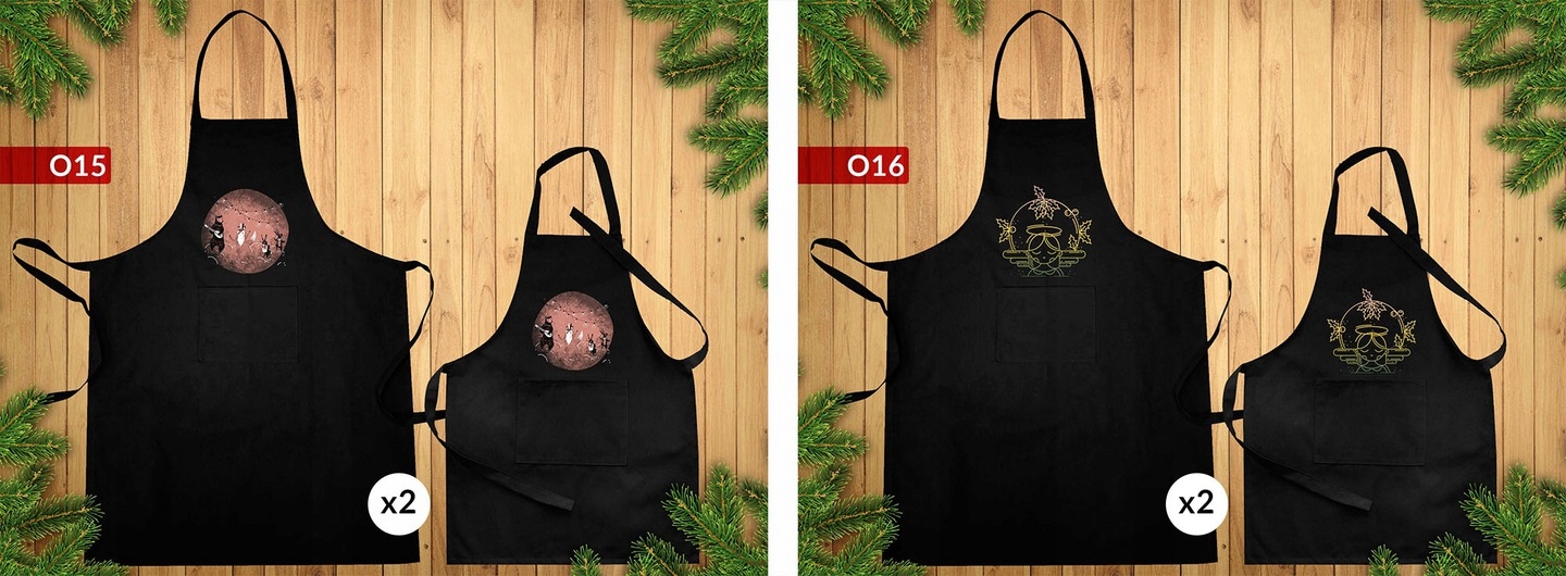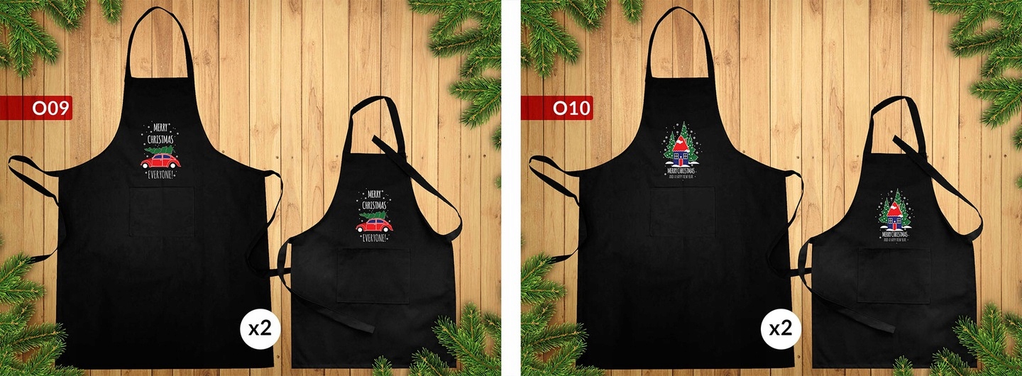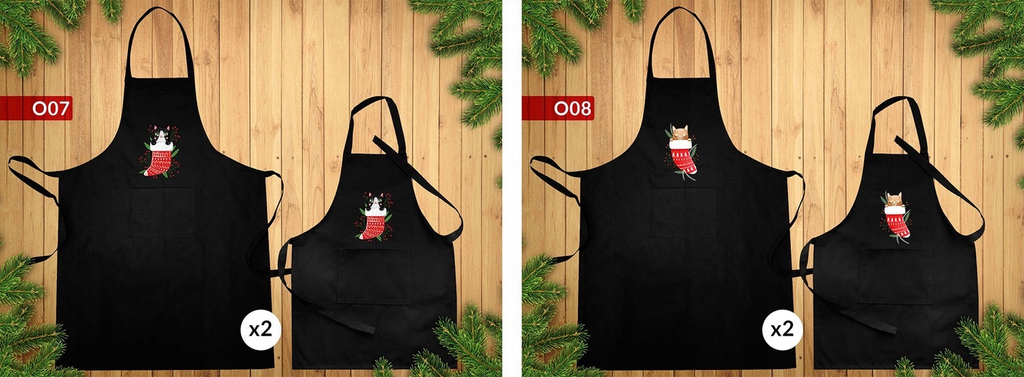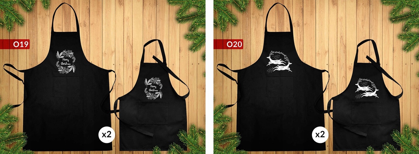 РОЖДЕСТВЕНСКИЙ КОМПЛЕКТ Фартук РОДИТЕЛЬ РЕБЕНОК Рождественский фартук ЧЕРНЫЙ