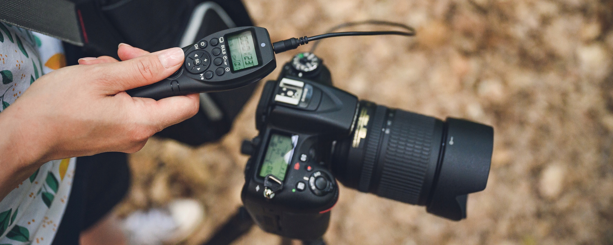 Если по каким-то причинам вы не хотите воспользоваться преимуществами радиоволн или просто забыли положить приемник в рюкзак, у вас всегда есть еще один вариант! Подключить пульт можно традиционным способом через кабель напрямую к камере. Традиционный триггер с интервалометром в руках.