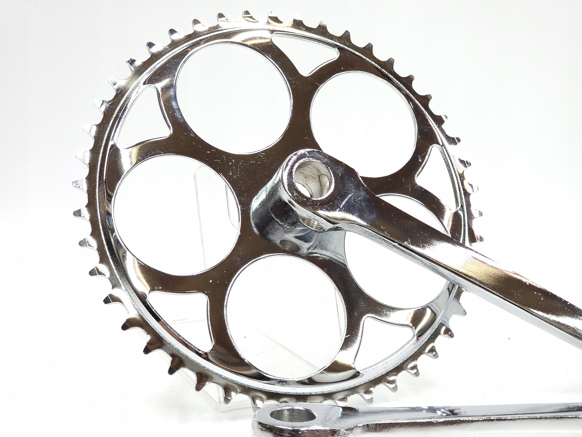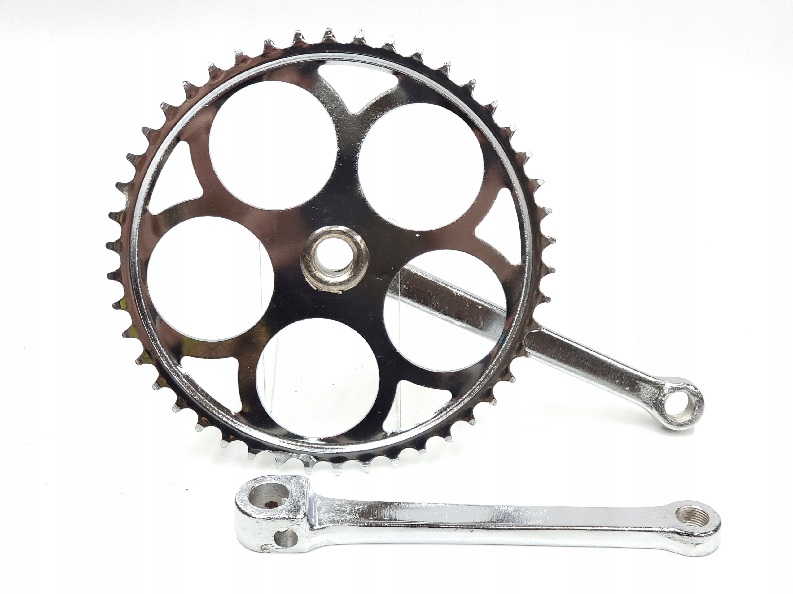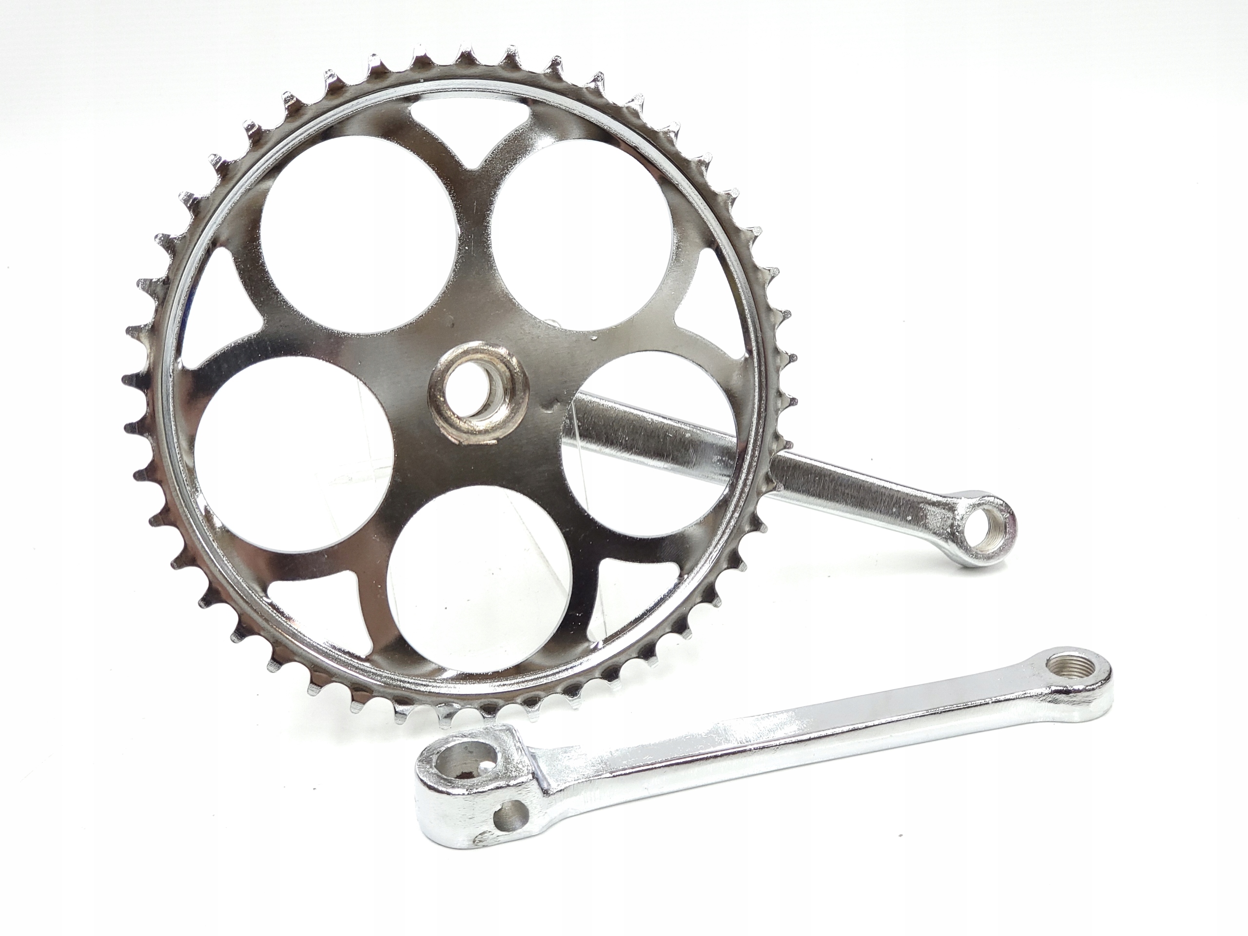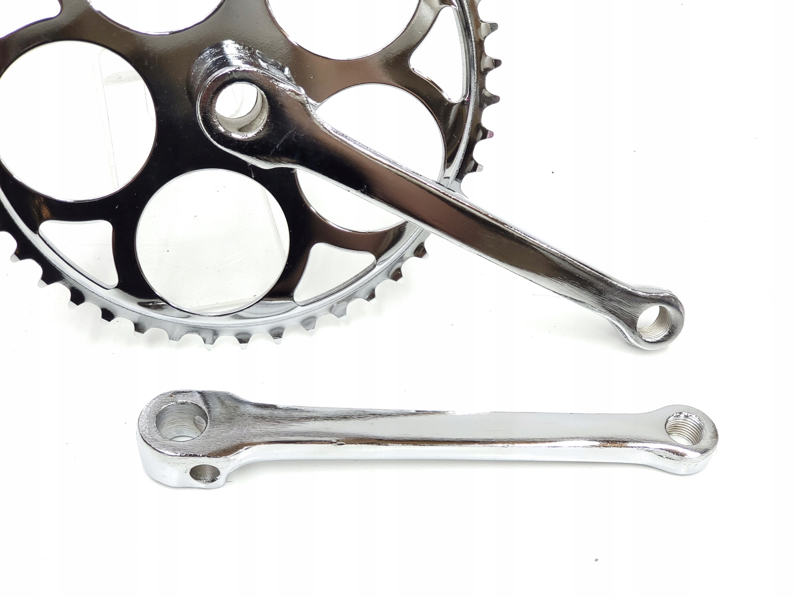 Предлагаем НОВЫЙ шатун на 46 зубьев для велосипедов Romet Wagant Gazela Laura Kometa Narcyz Malwa Wigry и аналогичных моделей из Польской Народной Республики. В комплект входит правый шатун (без каретки) + левый шатун. Размеры указаны на последних фотографиях.