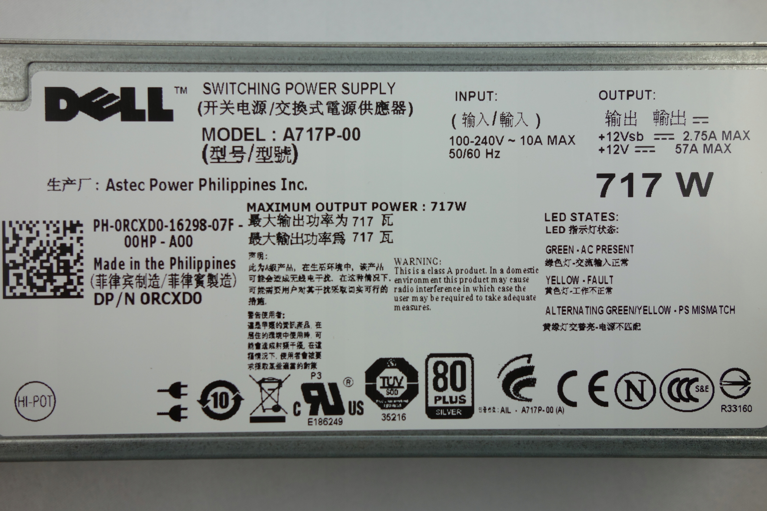 Просматривая «New Dell PowerEdge 717W / A717P-00 RCXD0», вы можете быть уверены, что данный товар из каталога «Источники питания» будет доставлен из Польши и проверен на целостность. В цене товара, указанной на сайте, учтена доставка из Польши. Внимание!!! Товары для Евросоюза, согласно законодательству стран Евросоюза, могут отличаться упаковкой или наполнением.