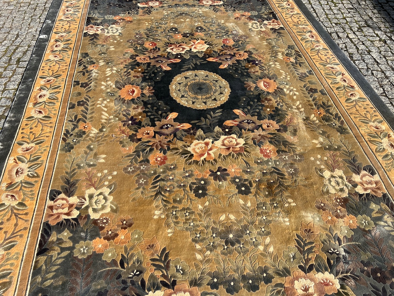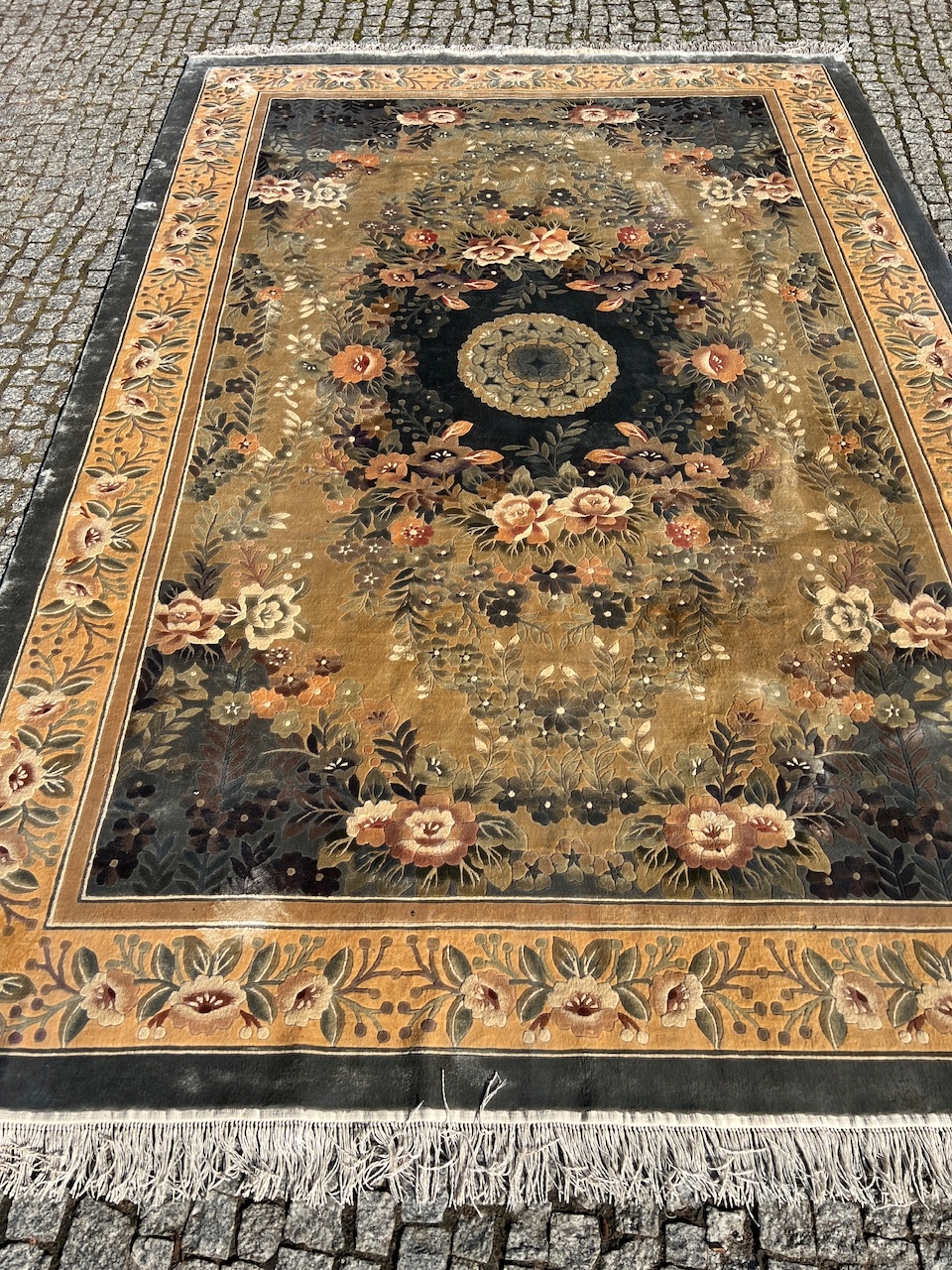 ТЕМА: Китайский ковер ручной работы. Имеется бирка под ковриком + бумажный сертификат по запросу. В галерее до продажи она стоила почти 11 500 евро, т.е. около 48 000 злотых. Она уникальна своим рисунком и цветом. Это ковер очень высокого качества. Эти ковры входят в число самых красивых ковров в мире.