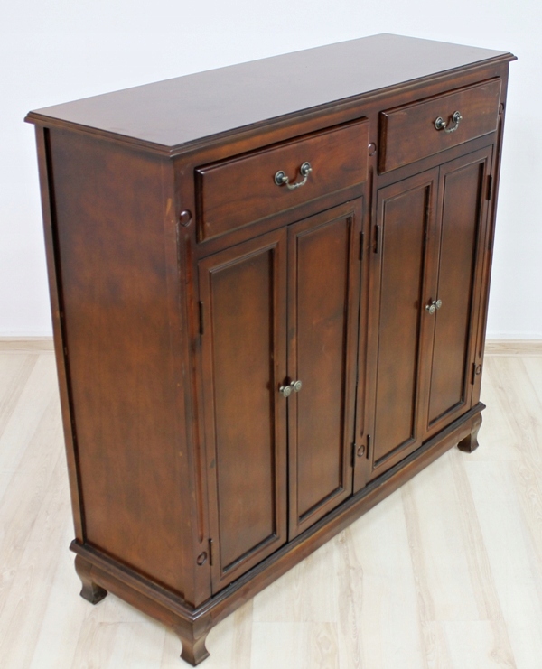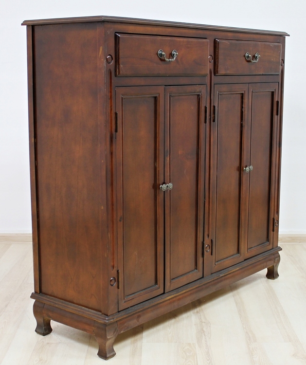 Очаровательный предмет мебели с двумя ящиками и двумя шкафчиками. Вся вещь украшена металлическими ручками.