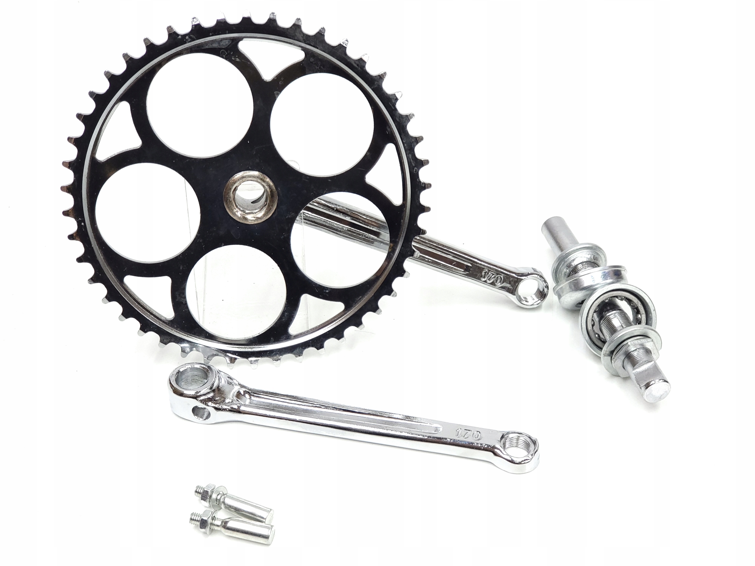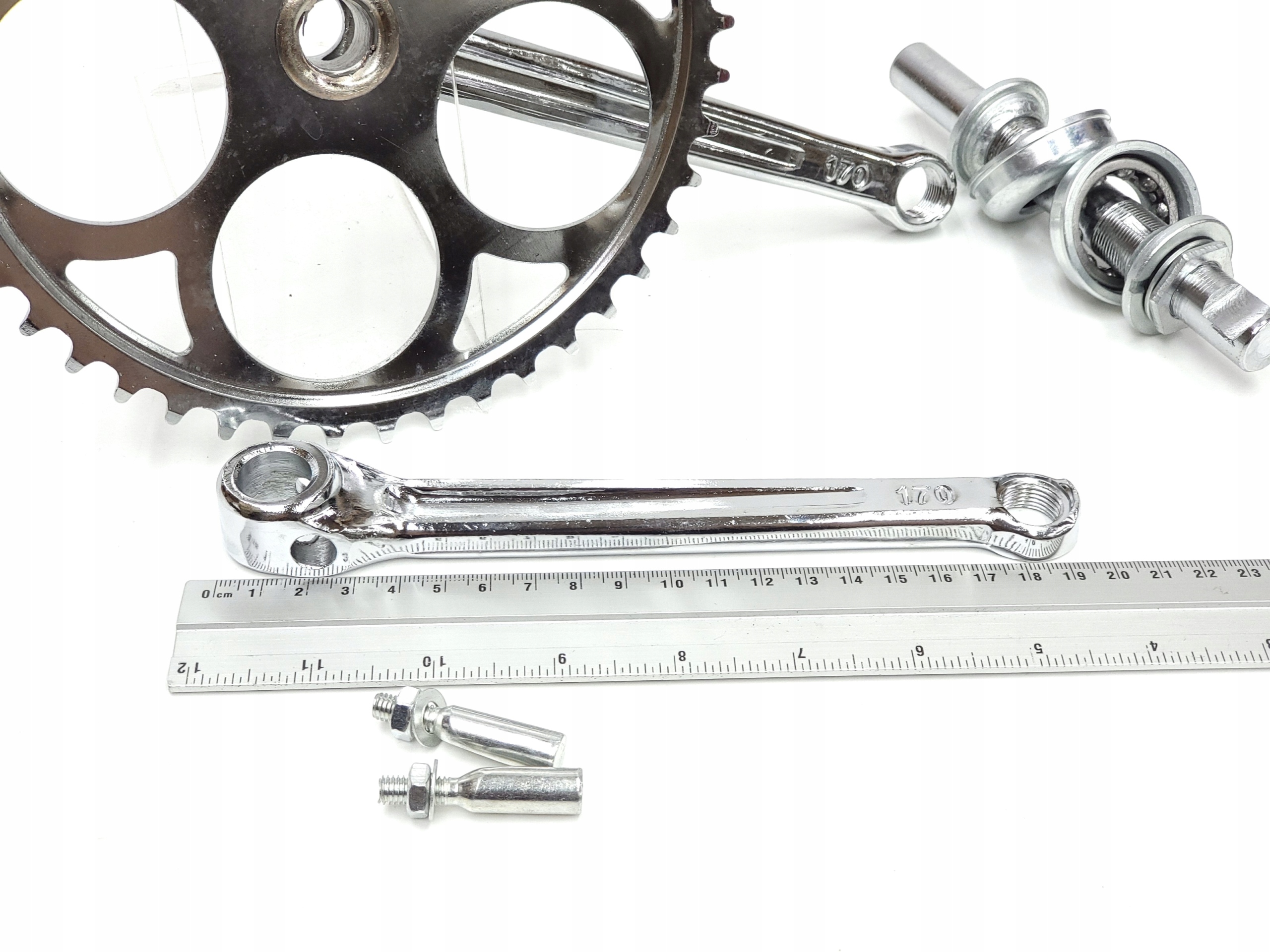 мы предлагаем новый кривошитель 46 зубов для Ромет Малва Нарциз Калина Вагант Газель Комета BMX Laura и аналогичные модели с годов PRL. Полный набор включает в себя: правый кривошип, рамка левой капельницы, 2x Clin, ось нижнего кронштейна, 2 -кратный нижний кронштейн, 2 -кратный нижний кронштейн, набор беговых дорожек и гайков.