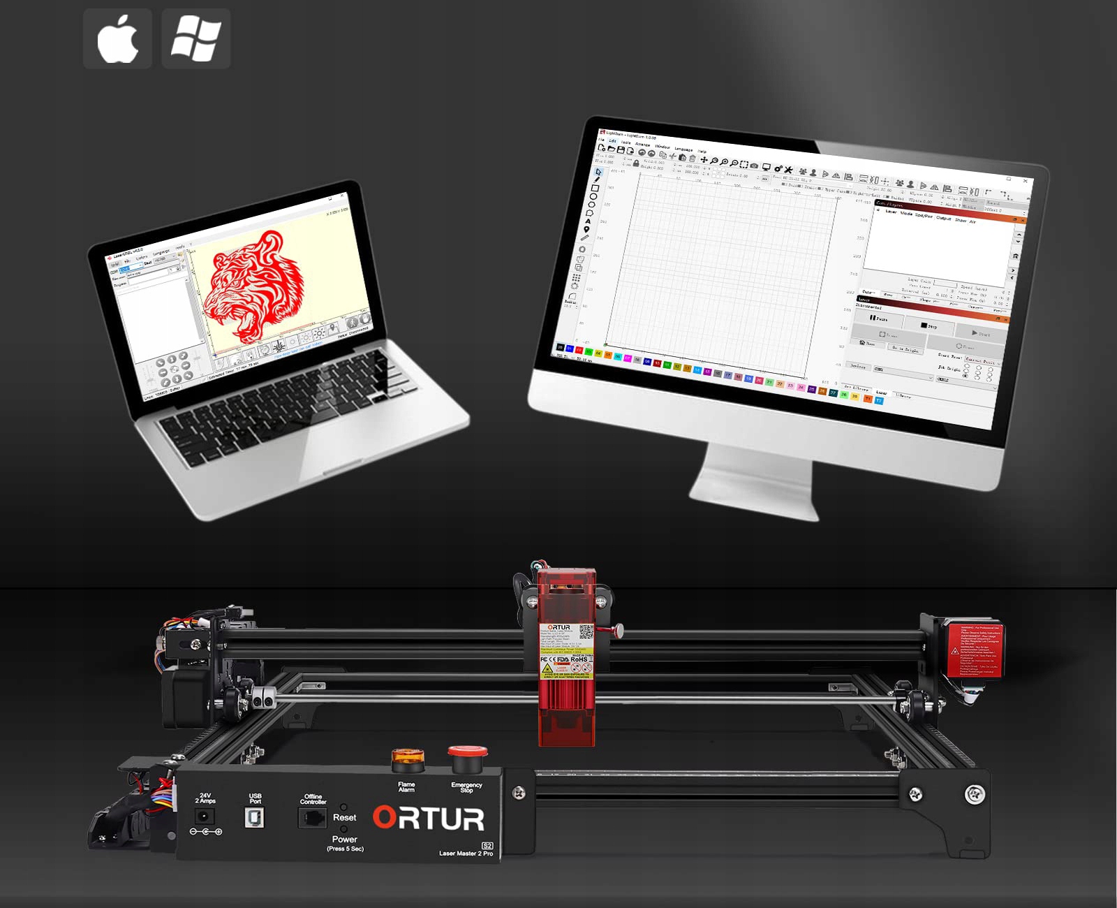 Лазерный гравер Ortur может быть совместим с различным зрелым программным обеспечением для гравировки, таким как LaserGRBL, LightBurn, поддерживает Win XP/Win 7/Win 8/Win 10, а также поддерживает системы MAC и Linux. (LightBurn, нужно платить), формат файла гравировки поддерживает JPG, PNG, BMP, JPEG, SVG и т. д.