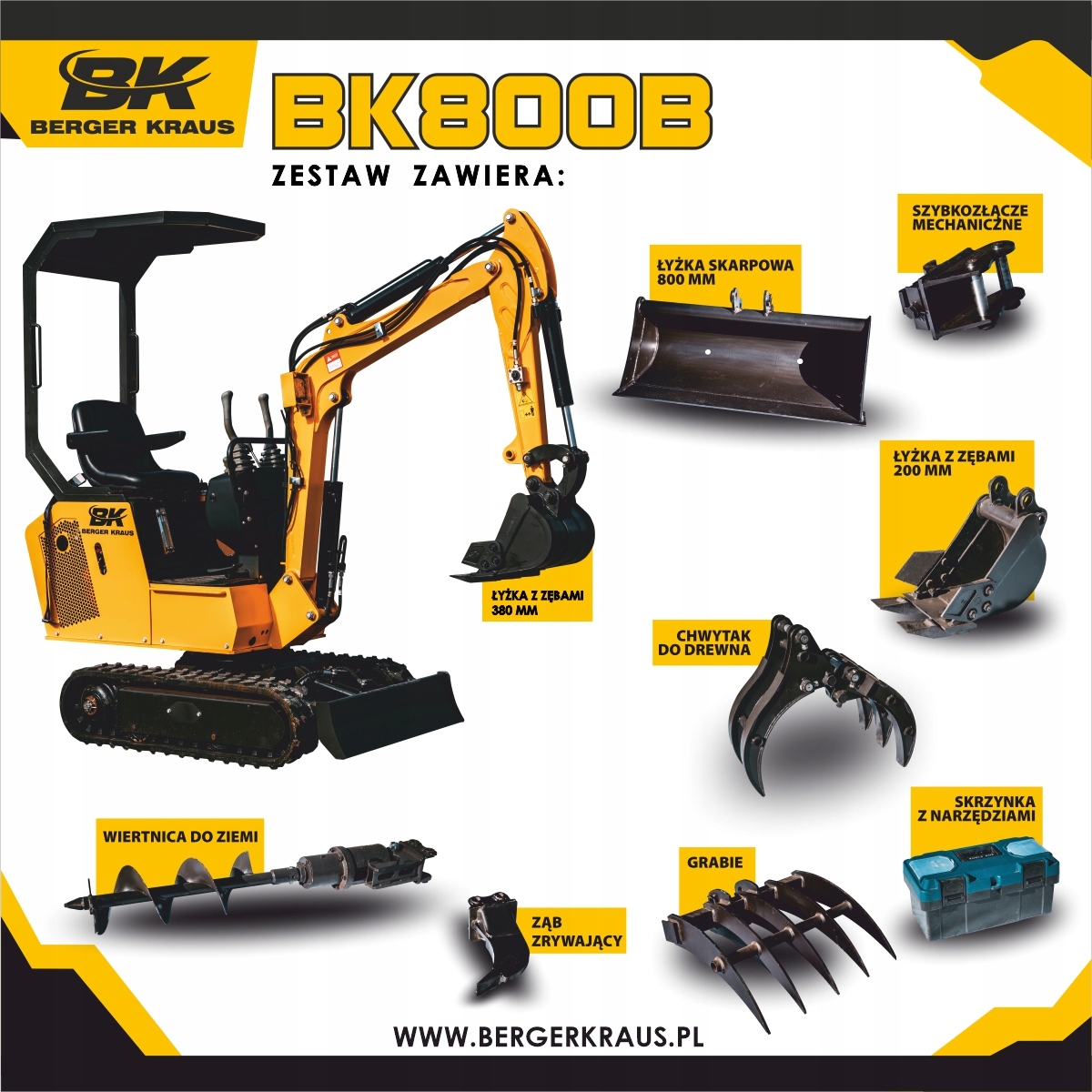 Новый мини -экскаватор Berger Kraus BK800B с аксессуарами