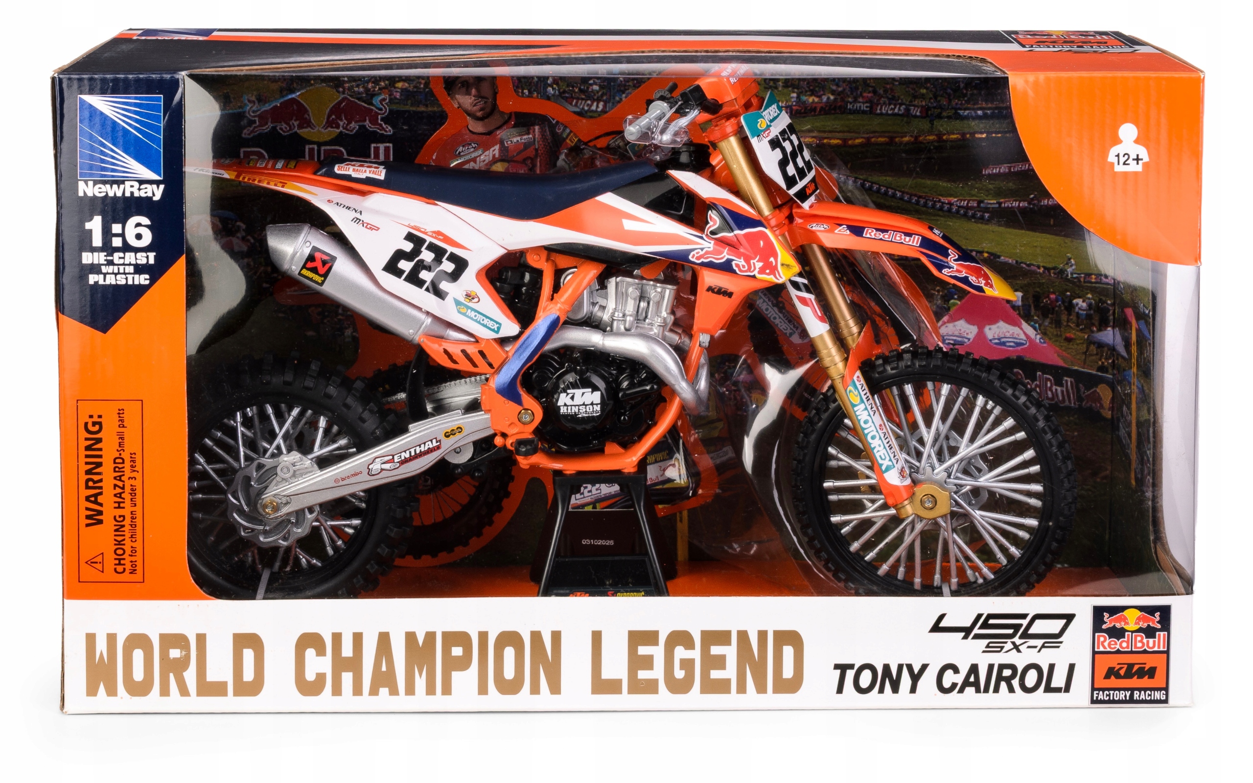 НОВЫЙ МОТОЦИКЛ RAY KTM 450SX-F #222 TONY CAIROLI 1:6 НОВАЯ МОДЕЛЬ МОТОКРОССА