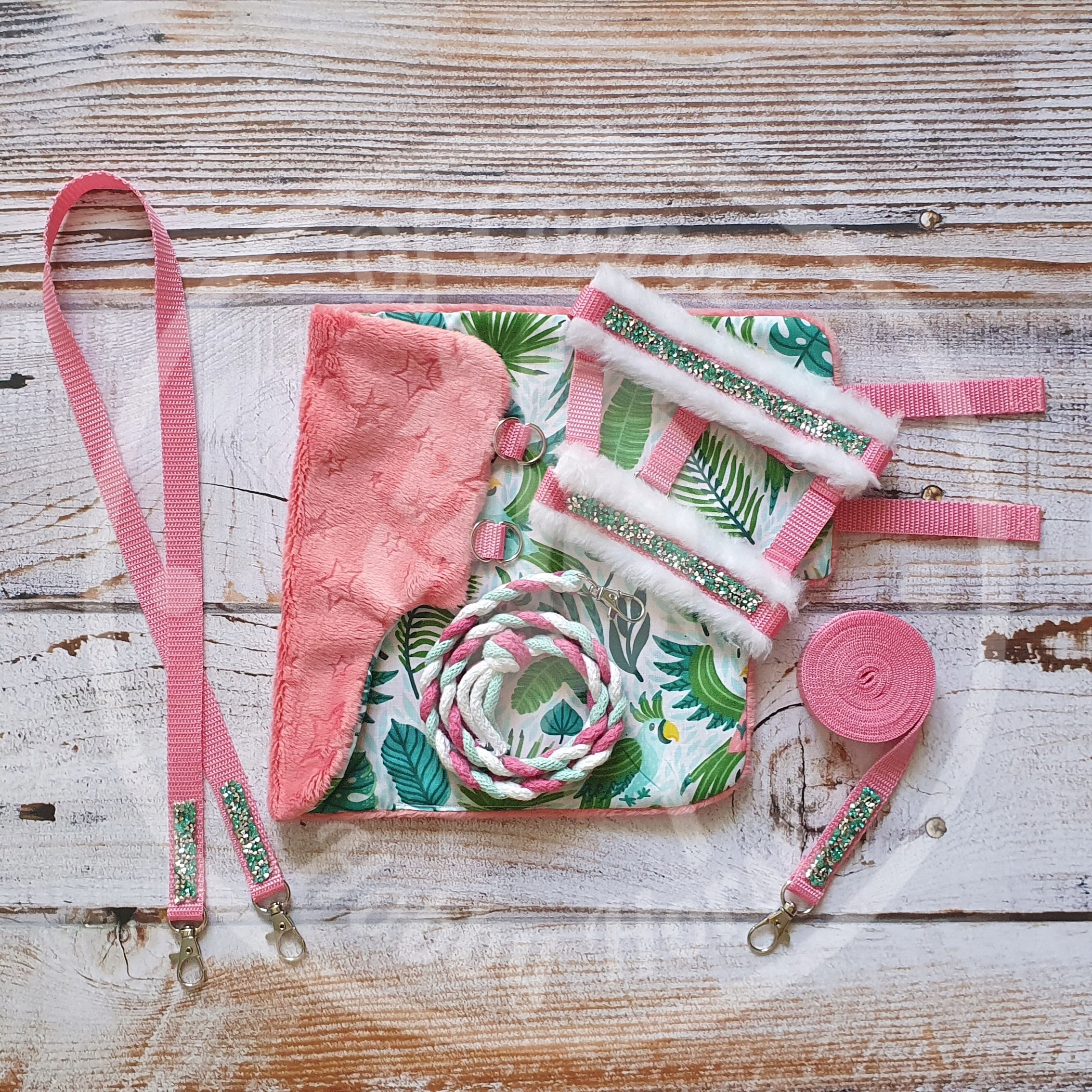 коврик с двумя сторонами с одной стороны хлопка в попугаях и листьях, а на другой розовой полярной грунте с прессованными звездами p>