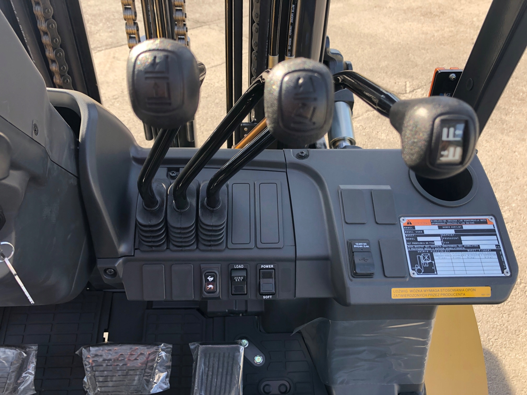 - LPG (установка заводского газа и рама цилиндра) Оператор с регулируемыми ремнями безопасности и подлокотниками
