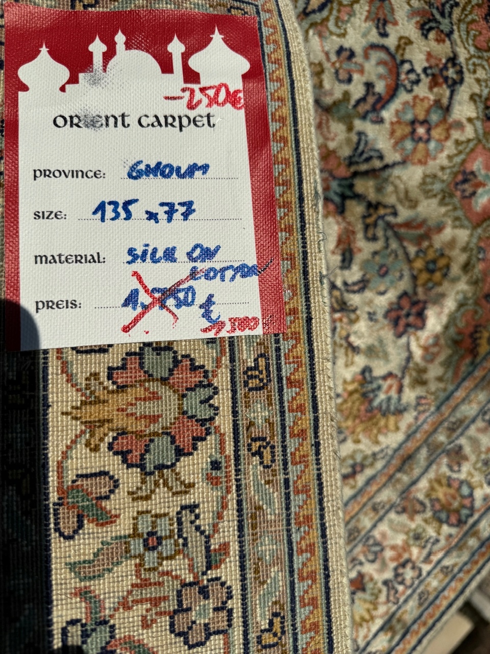 НОВИЙ ПЕРСЬКИЙ ШОВКОВИЙ КИЛИМ GHOUM 135x77 магазин 8000 зл.