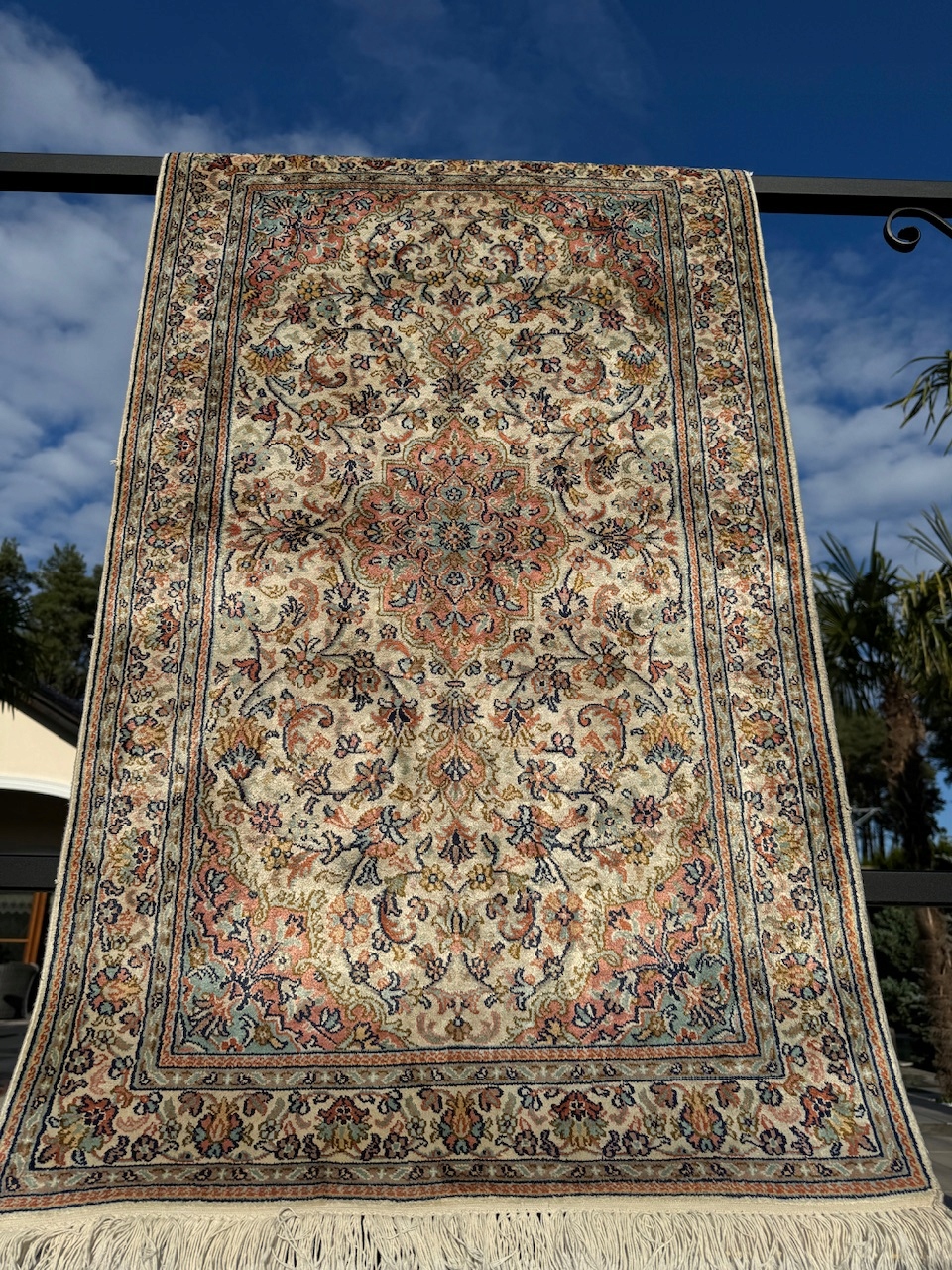 ТЕМА: Круглый персидский ковер ручной работы «Гум». Имеет сертификат подлинности. В галерее до продажи она стоила почти 1750 евро, или около 8000 злотых. Универсальные узоры делают этот ковер подходящим для многих интерьеров. Название происходит от города, где они производятся, и относится к более высокому классу ковров группы.