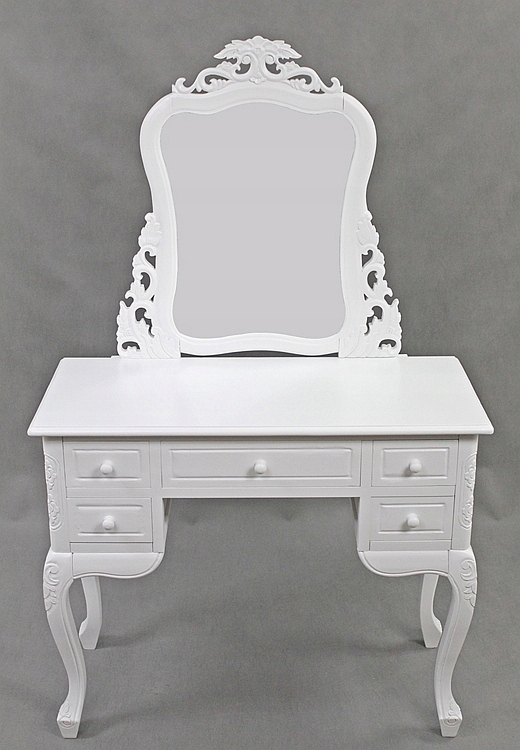 Очаровательный предмет мебели с гнутыми ножками и красивой резьбой. Имеет пять ящиков и впечатляющее большое зеркало.