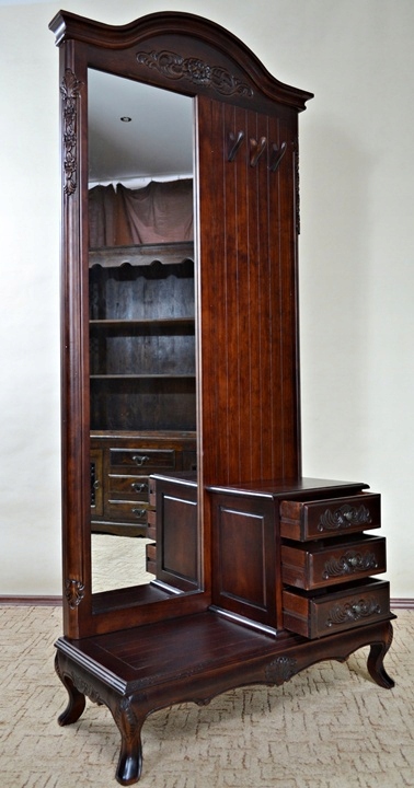 Приглашаю Вас приобрести очень декоративную, стильную вешалку со шкафчиком и зеркалом. Мебель изготовлена из экзотической древесины – производной красного дерева. Вешалка очень стильная и функциональная. Красиво смотрится.