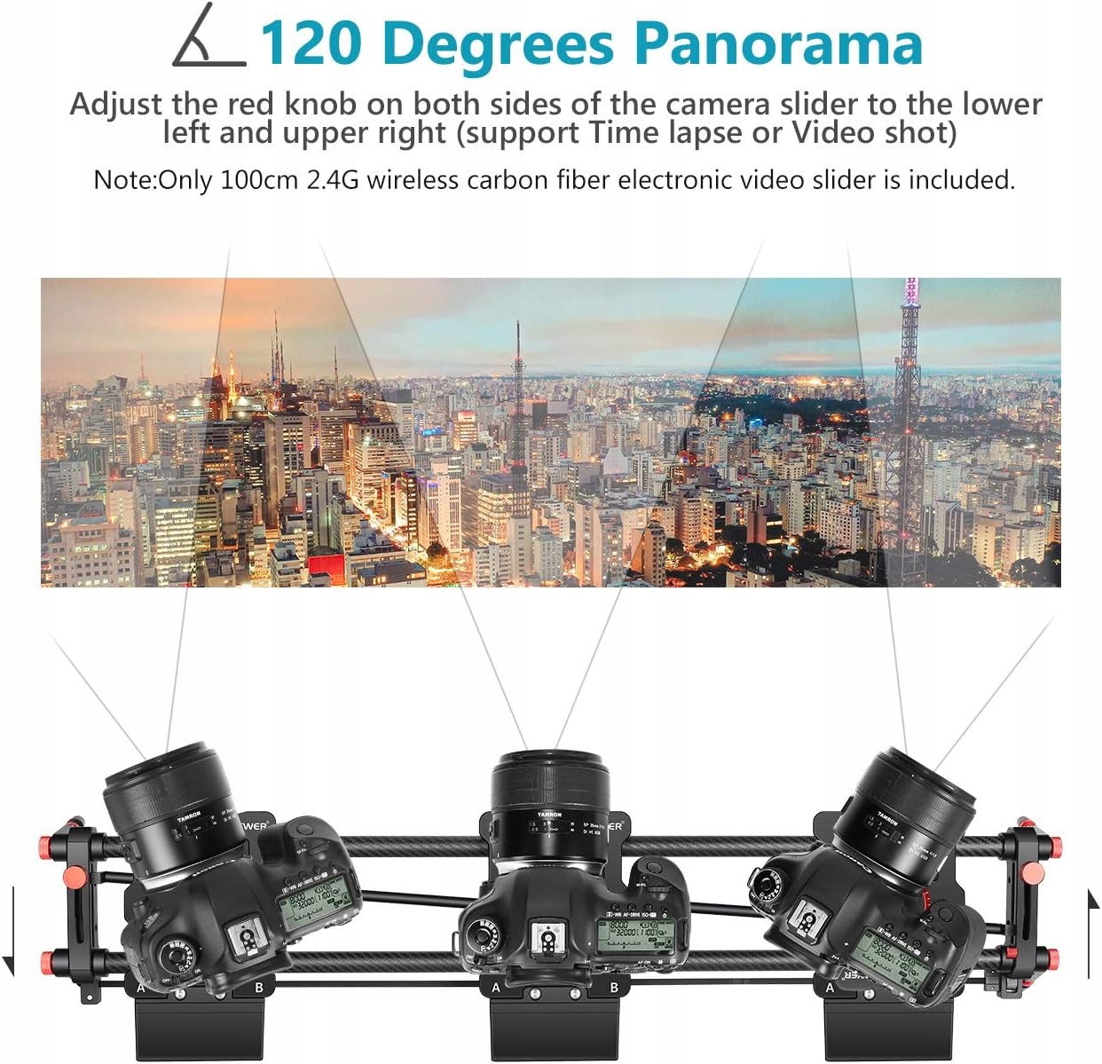 1 моторизованный слайдер камеры, 1 бесшумный мотор, 1 пульт дистанционного управления 2,4G, 1 аккумулятор, 1 зарядное устройство USB, 6 триггерных кабелей (C1, C3, N1, N3, S1, S2), 1 х сумка для переноски.