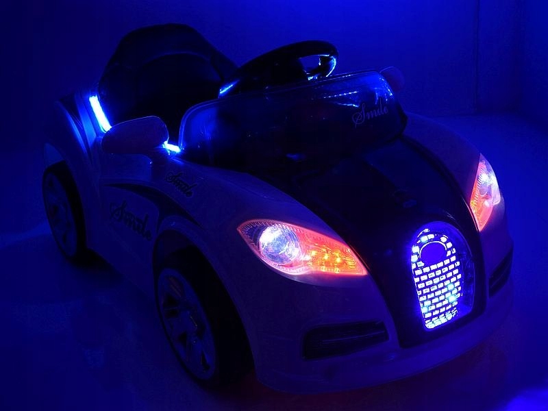 АВТОROADSTER SMILEпитание от 12 В с полным приводом и запуск с ключа Благодаря использованию самых мощных двигателей мощностью 45 Вт автомобиль без проблем едет по неровной местности, и эти двигатели очень хорошие качество. Привлекают внимание мягкие мягкие колеса, благодаря которым юный водитель может ощутить комфорт вождения.