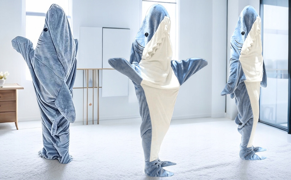 🔥【Универсальное одеяло в виде акулы】 Раскройте свою игривую сторону с этим очаровательным и забавным одеялом в виде акулы. Это не просто одеяло, этот комбинезон также можно использовать как одежду для сна, костюм для косплея и спальный мешок. Кроме того, изготовленное из уютной фланели и флиса, оно сочетает в себе тепло и комфорт с милым дизайном, вдохновленным акулами, что позволит вам выделиться на вечеринках с ночевкой, костюмированных вечеринках или просто стильно отдохнуть дома.