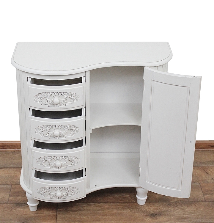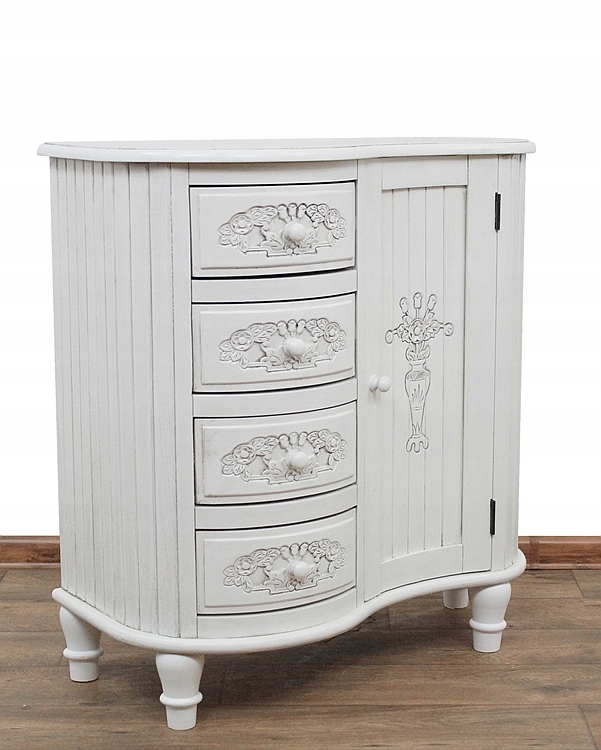 Очаровательный предмет мебели с четырьмя ящиками и закрытым шкафом.
