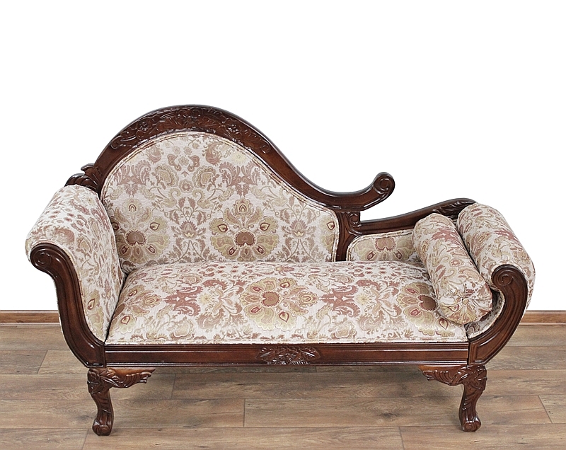 Стильный предмет мебели с красивой резьбой и гнутыми ножками.