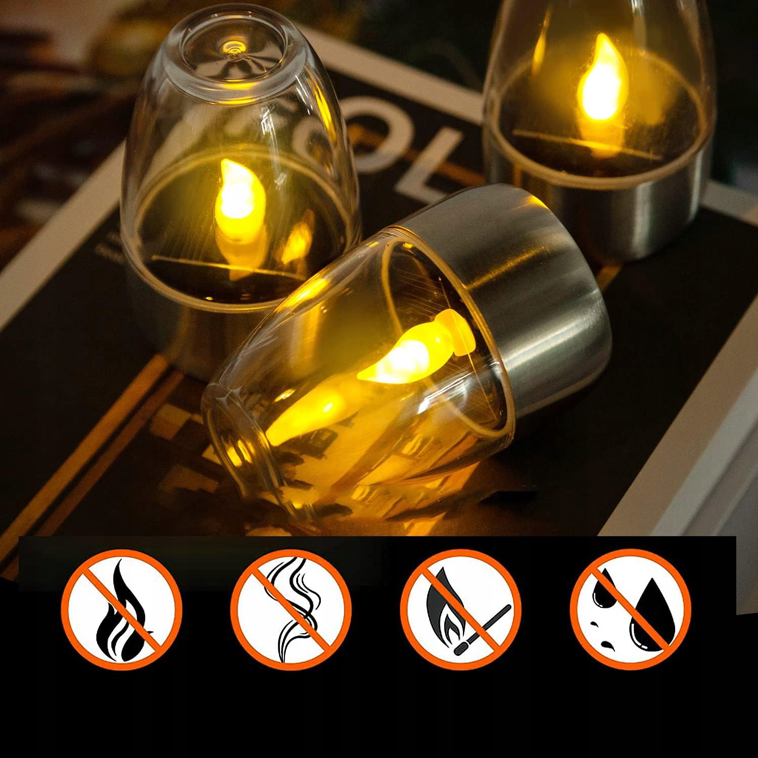 ✅ Уникальная базовая конструкция из нержавеющей стали и прозрачная, внешняя водонепроницаемая декоративная солнечная свеча, размер 6*9*6 см. Силиконовые солнечные панели с высоким качеством и солнечные лампы обеспечивают долговечность и хорошие впечатления, автоматически заряжаясь в течение дня и автоматическое освещение ночью. Для создания безопасной и элегантной окружающей среды