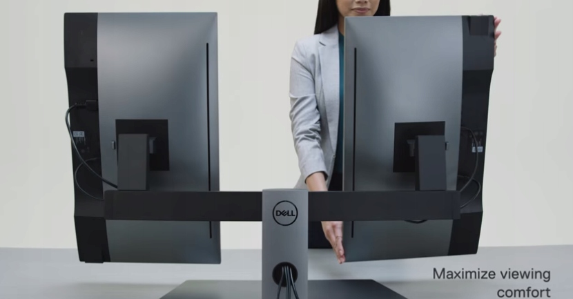 Подставка позволяет независимо регулировать высоту и угол наклона обоих мониторов. Каждую панель можно поднять на 130 мм и повернуть на 90 ° в любом направлении для вертикальной ориентации, что упрощает просмотр веб-сайтов и прокрутку экранов приложений.