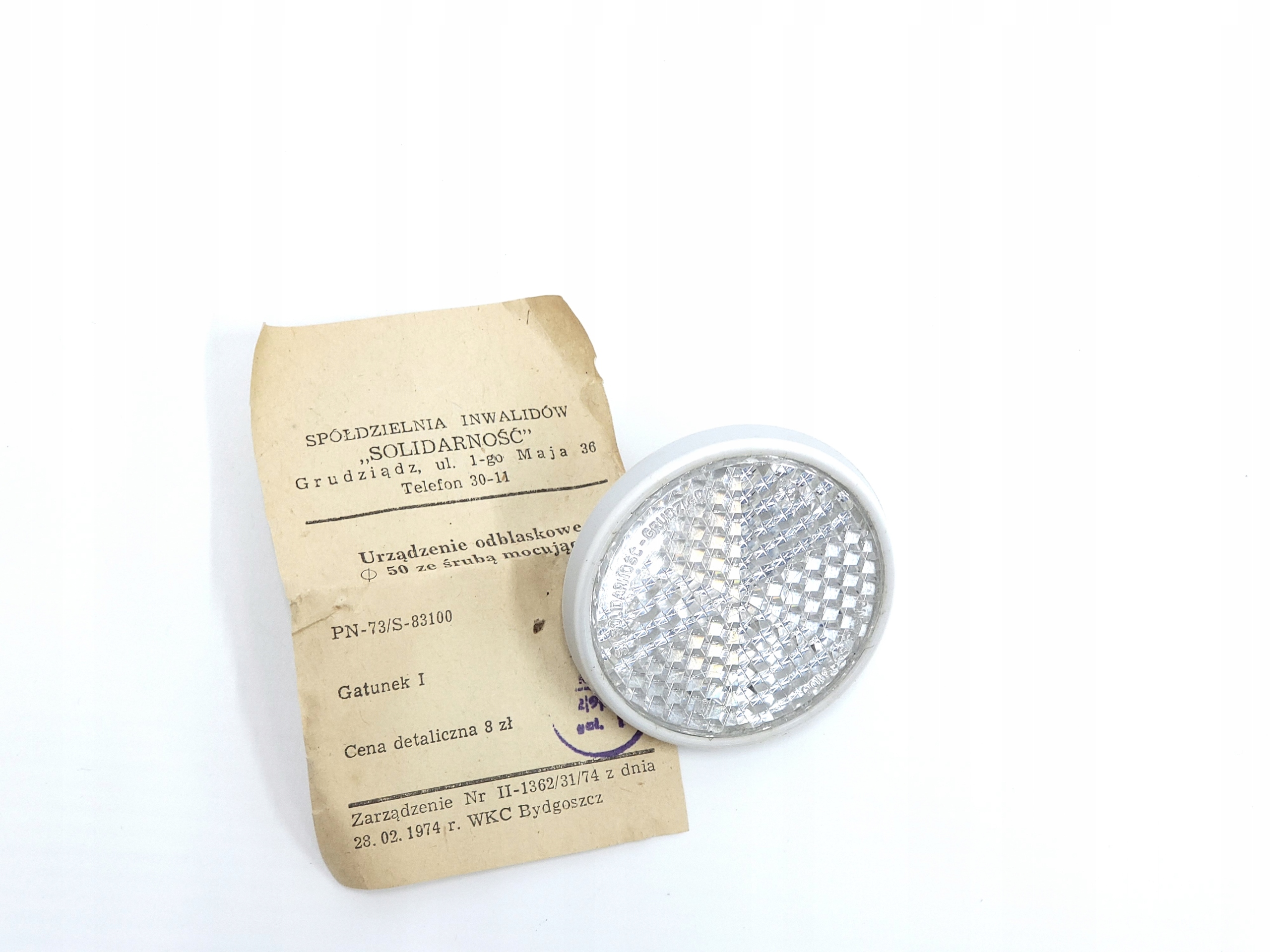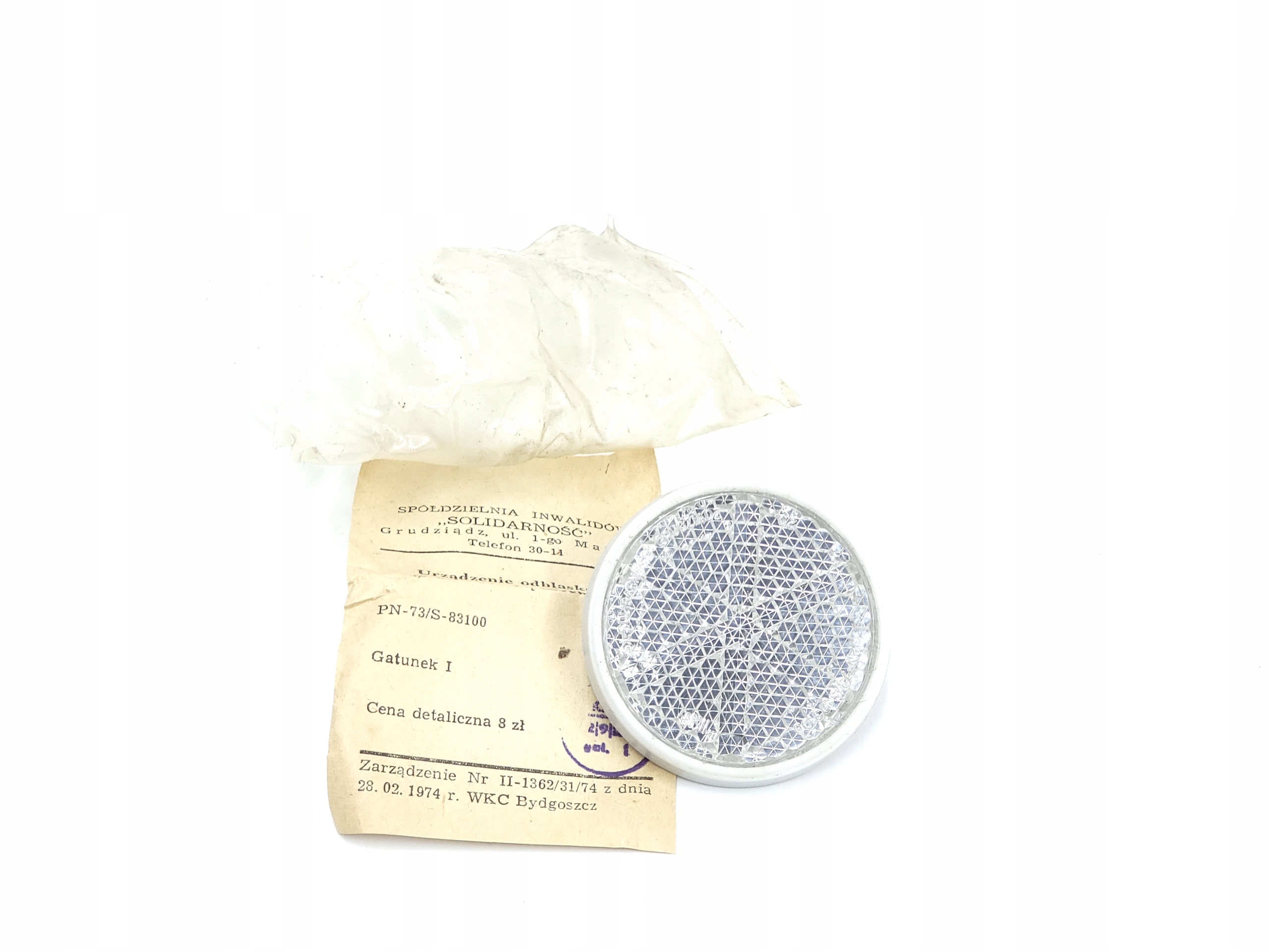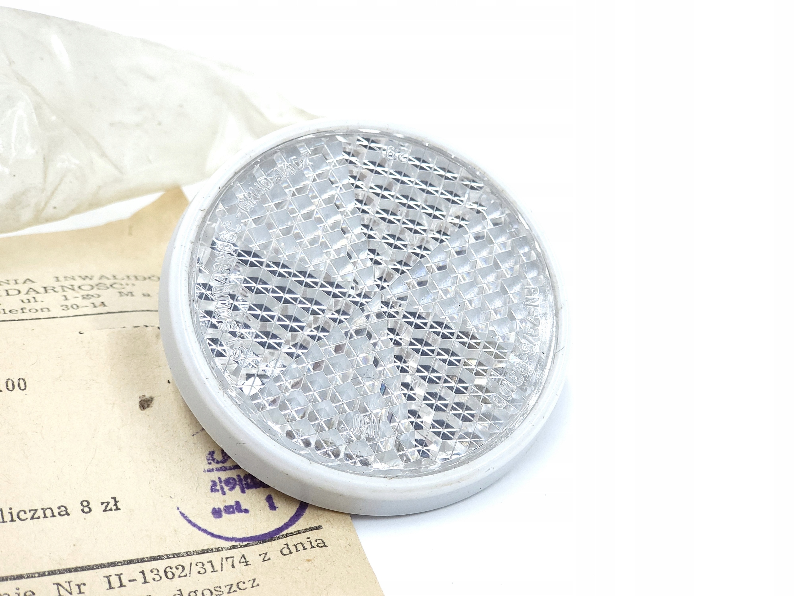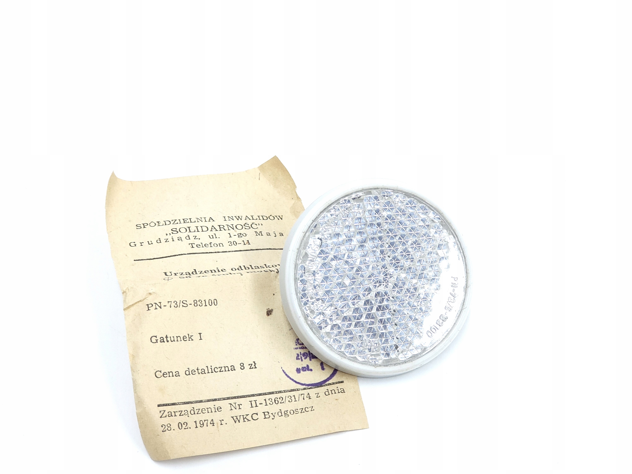 Предлагаем НОВЫЙ отражатель белого цвета диаметром 5 см, 1977 года выпуска. В комплекте упаковка и бирка.
