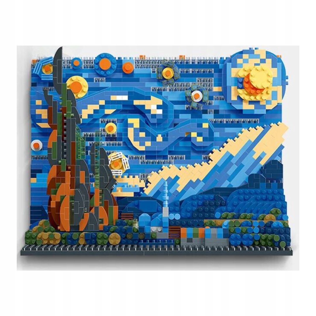 Воспроизведение картины «Gwiaździsta Night» Винсента Ван Гога с использованием блоков, сделанных из «зерна соли», является творческой интерпретацией этой знаменитой работы. Вместо традиционных художественных носителей, таких как краски или карандаши, используйте блоки для создания версии изображения.