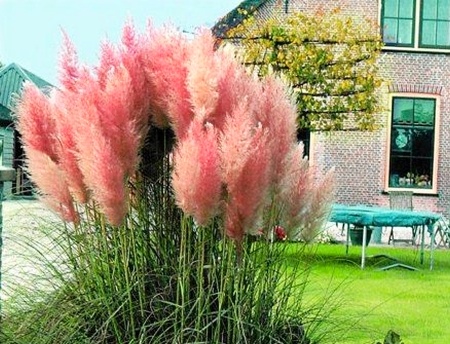 Невероятно декоративная пампасная трава, восхищающая своими красивыми розовыми «перьями».