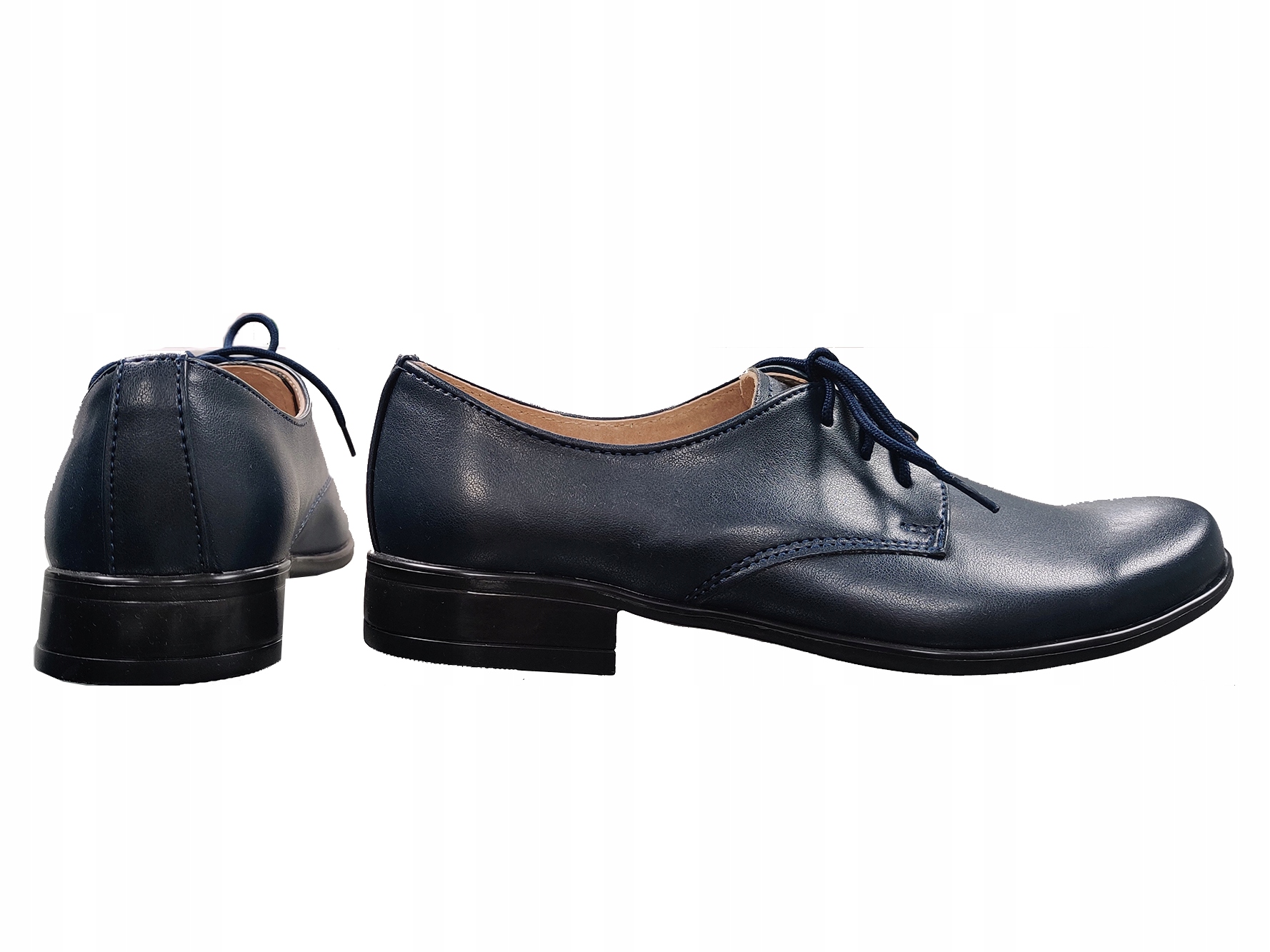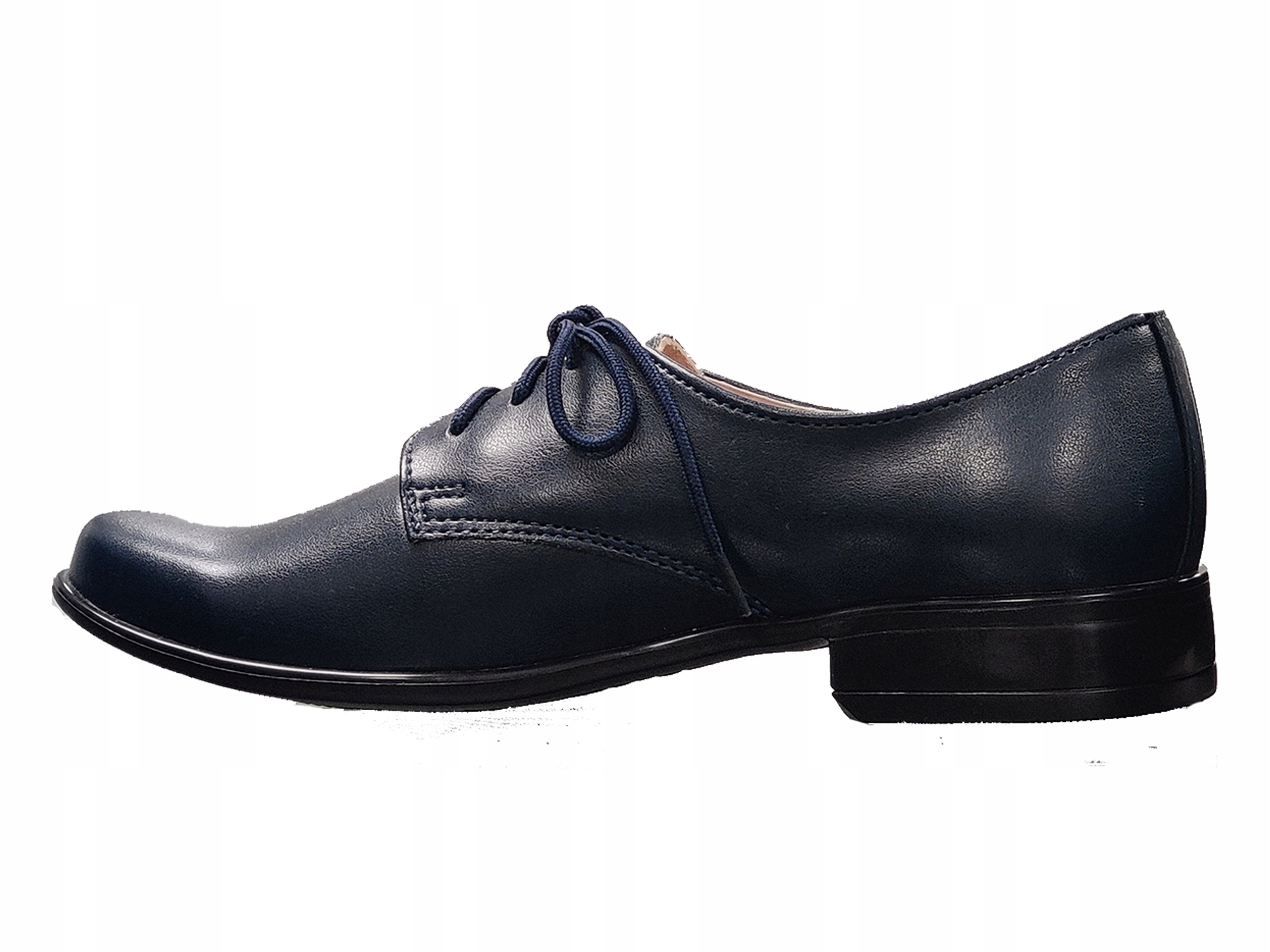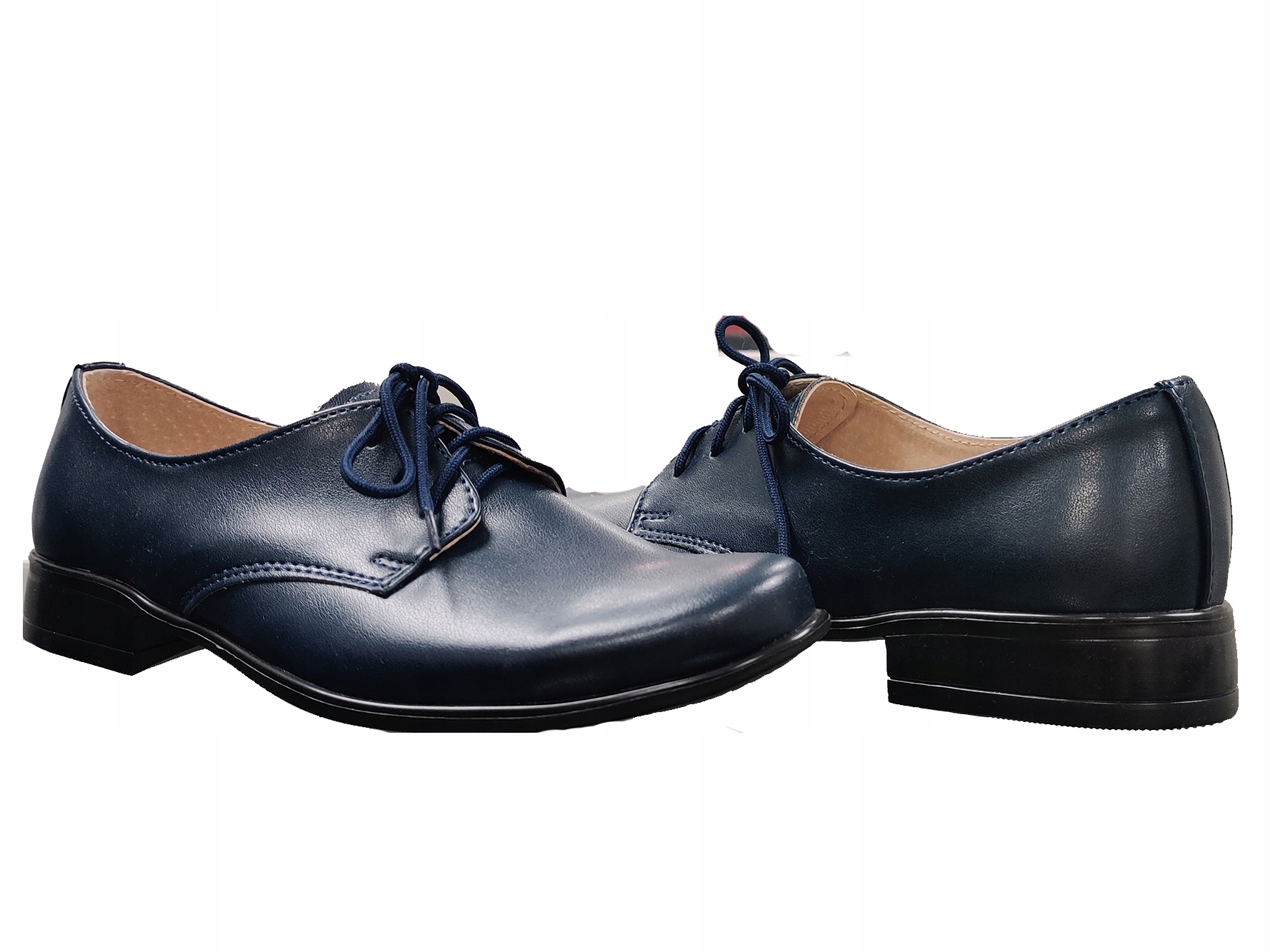 Официальные туфли для причастия для мальчика на шнуровке темно-синего польского предприятия KMK, изготовленные из высококачественной экокожи с подошвой повышенной истираемости сопротивление.