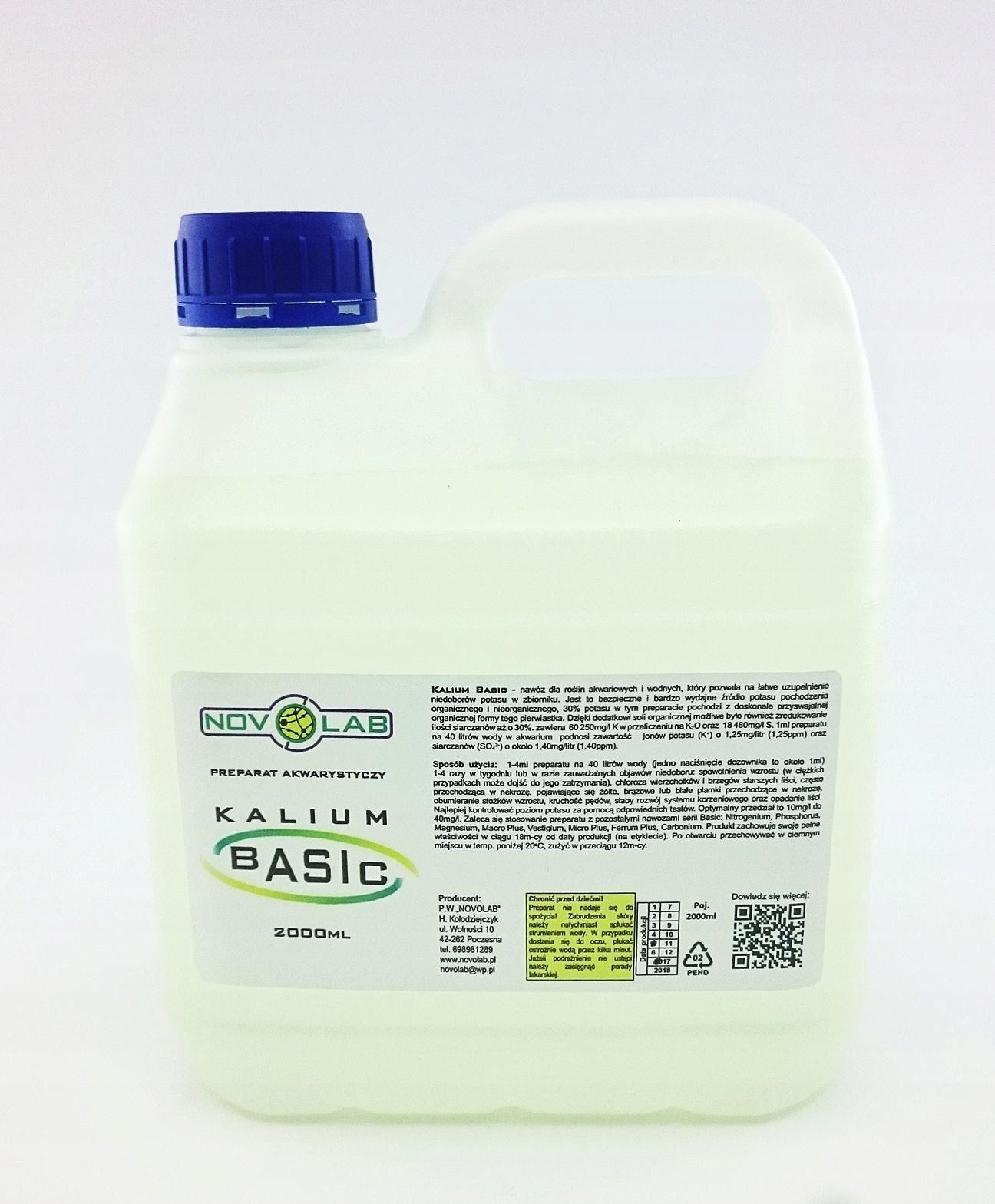 Kalium basic - это удобрение для аквариумов и водных растений, которое позволяет легко дополнять дефицит калия в резервуаре. Это безопасный и эффективный источник калия, он содержит 60250 мг/л K, рассчитанное на K2O и 18480 мг/л S. 30% калия в этом препарате поступает из совершенно усваиваемой органической формы этого элемента. Благодаря добавлению органической соли также было возможно уменьшить количество сульфата до 30%. 1 мл приготовления на 40 литров воды в аквариуме увеличивает содержание ионов калия (K+) на 1,25 мг/литр (1,25 чайца) и сульфата (SO42-) примерно на 1,4 мг/литр (1,4 млрд).
