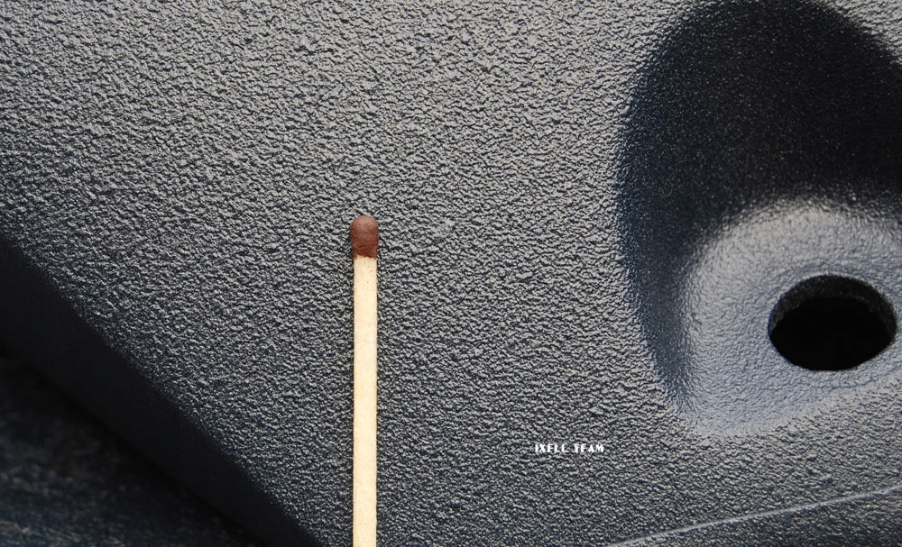 мелкая структура (отлично имитирует пластик) - при добавлении 25-30% разбавителя и нанесении обычным пистолетом с соплом ?1,4 мм.