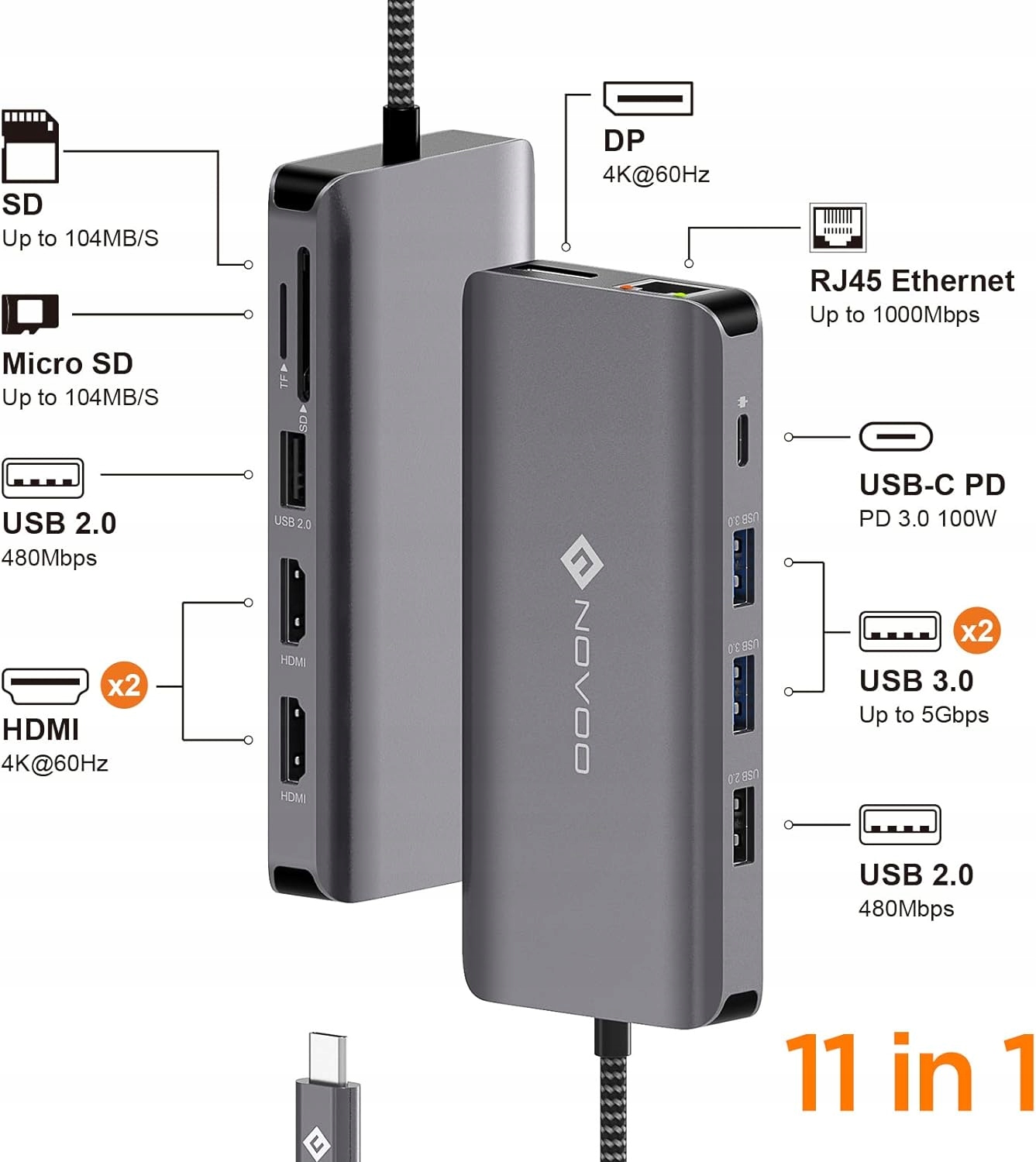 Док-станция NOVOO 11in1, концентратор USB C, 4K, 60 Гц