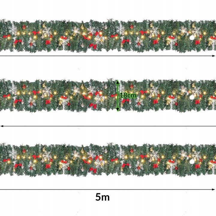 Рождественская гирлянда Casaria с теплыми белыми светодиодными огнями и рождественскими украшениями. Идеальное рождественское украшение для использования в помещении и на открытом воздухе с дистанционным управлением
