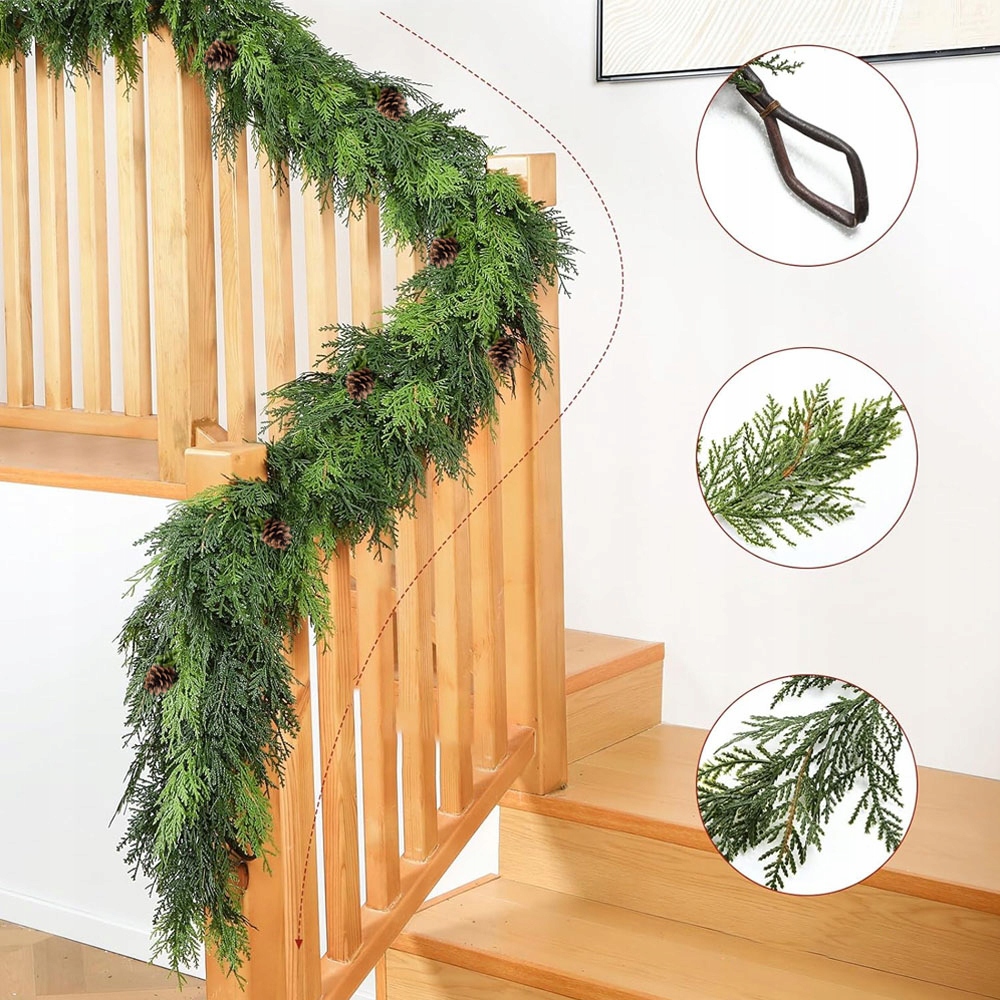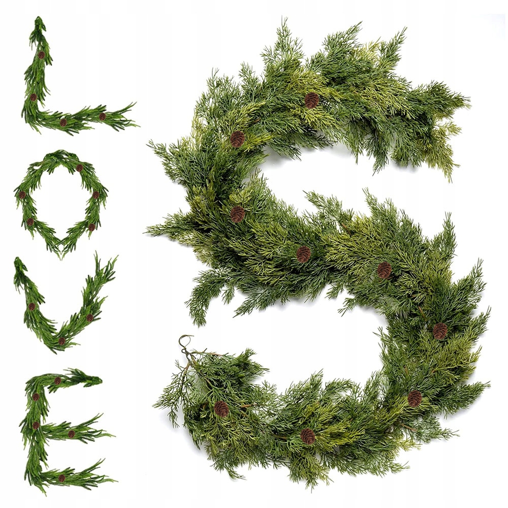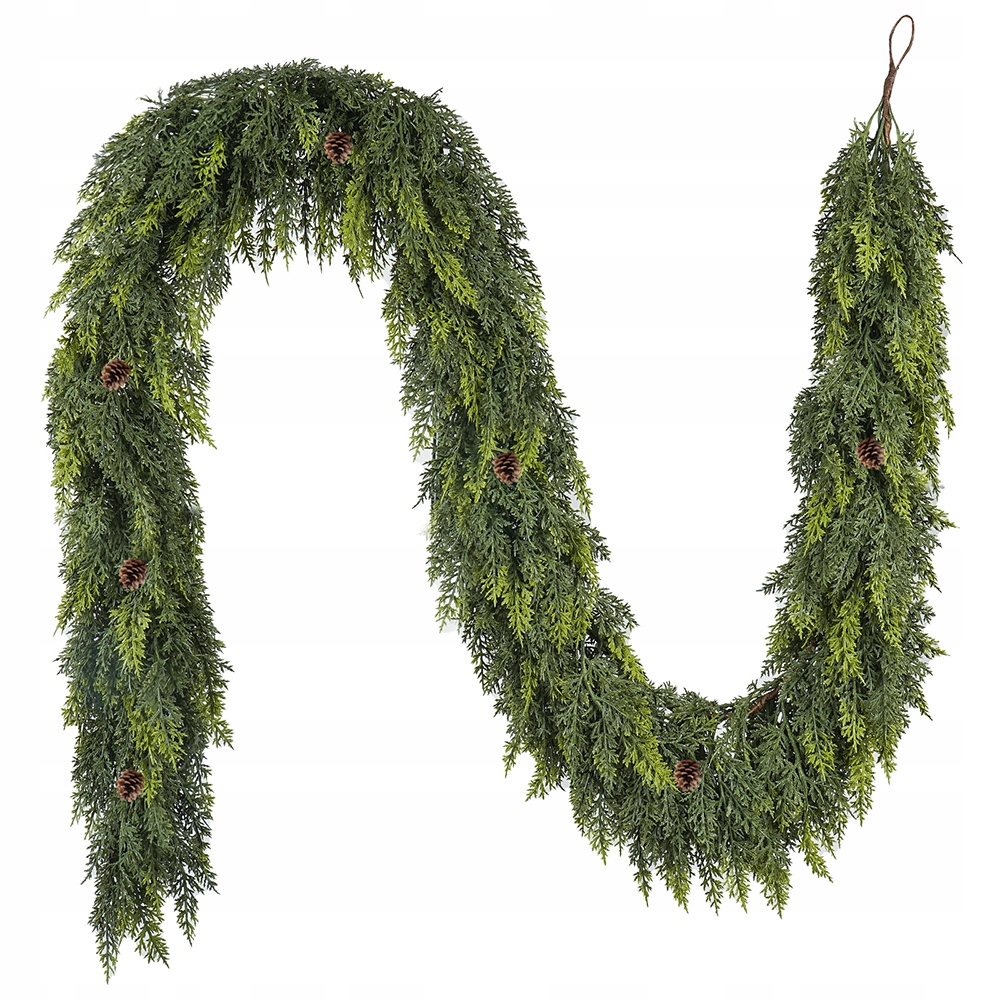 Рождественская гирлянда из искусственного кедра + 7 искусственных сосновых шишек зеленого цвета