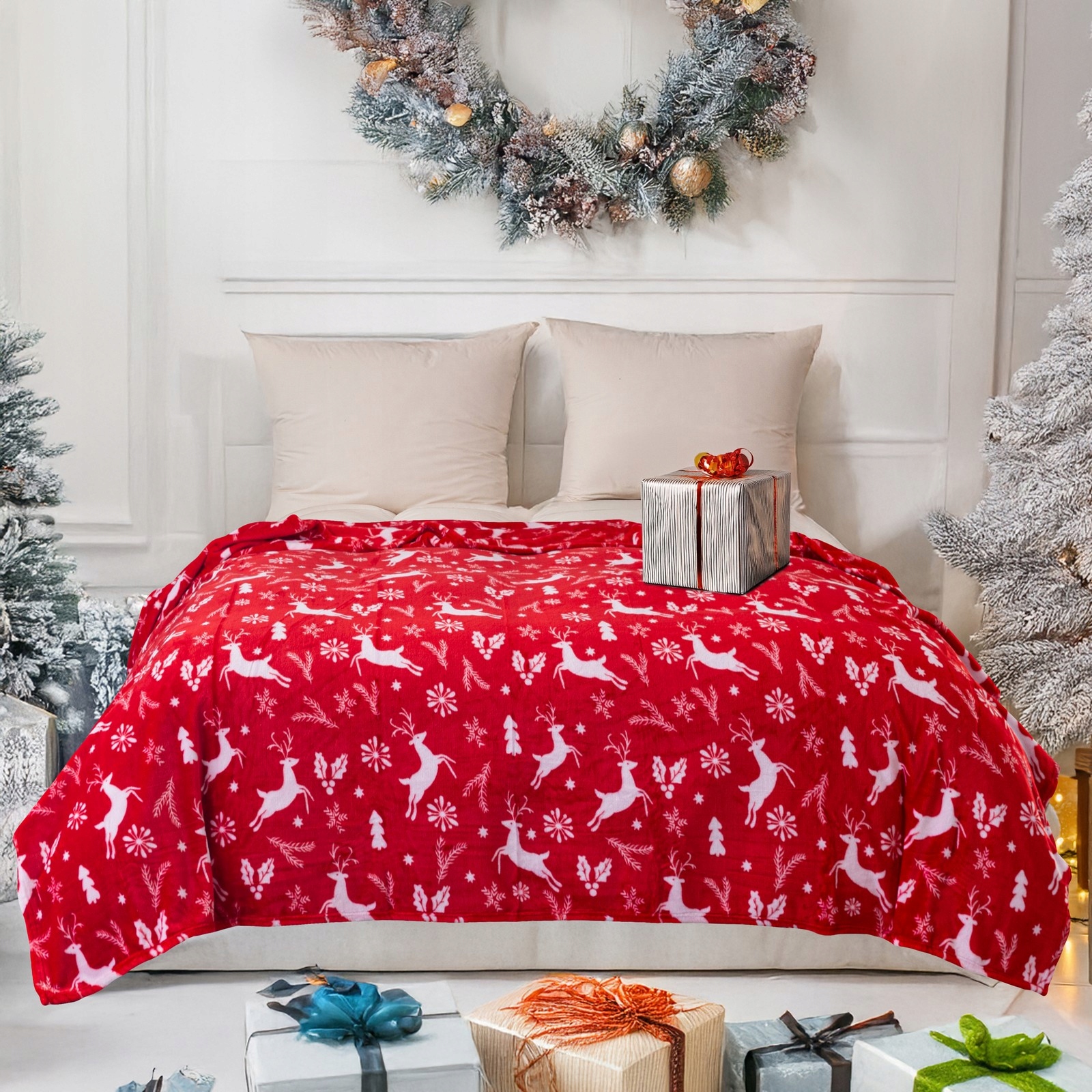 Благодаря рождественским узорам плед станет не только практичным аксессуаром, но и украшением интерьера. Украсьте кровать или диван, привнеся волшебство Рождества в гостиную и спальню.