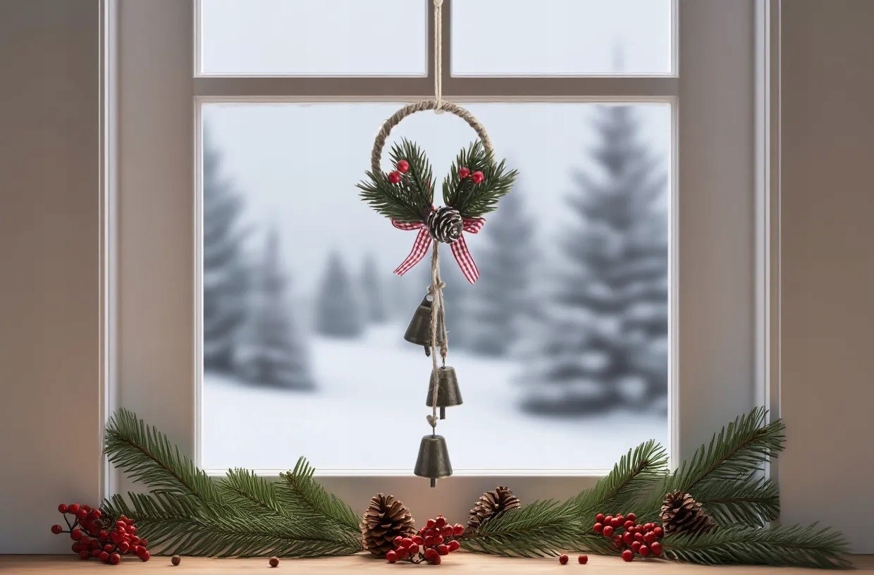 Подвеска с колокольчиками представляет собой прекрасное сочетание природы и традиций - идеально подходит для добавления рождественского очарования в любой интерьер.