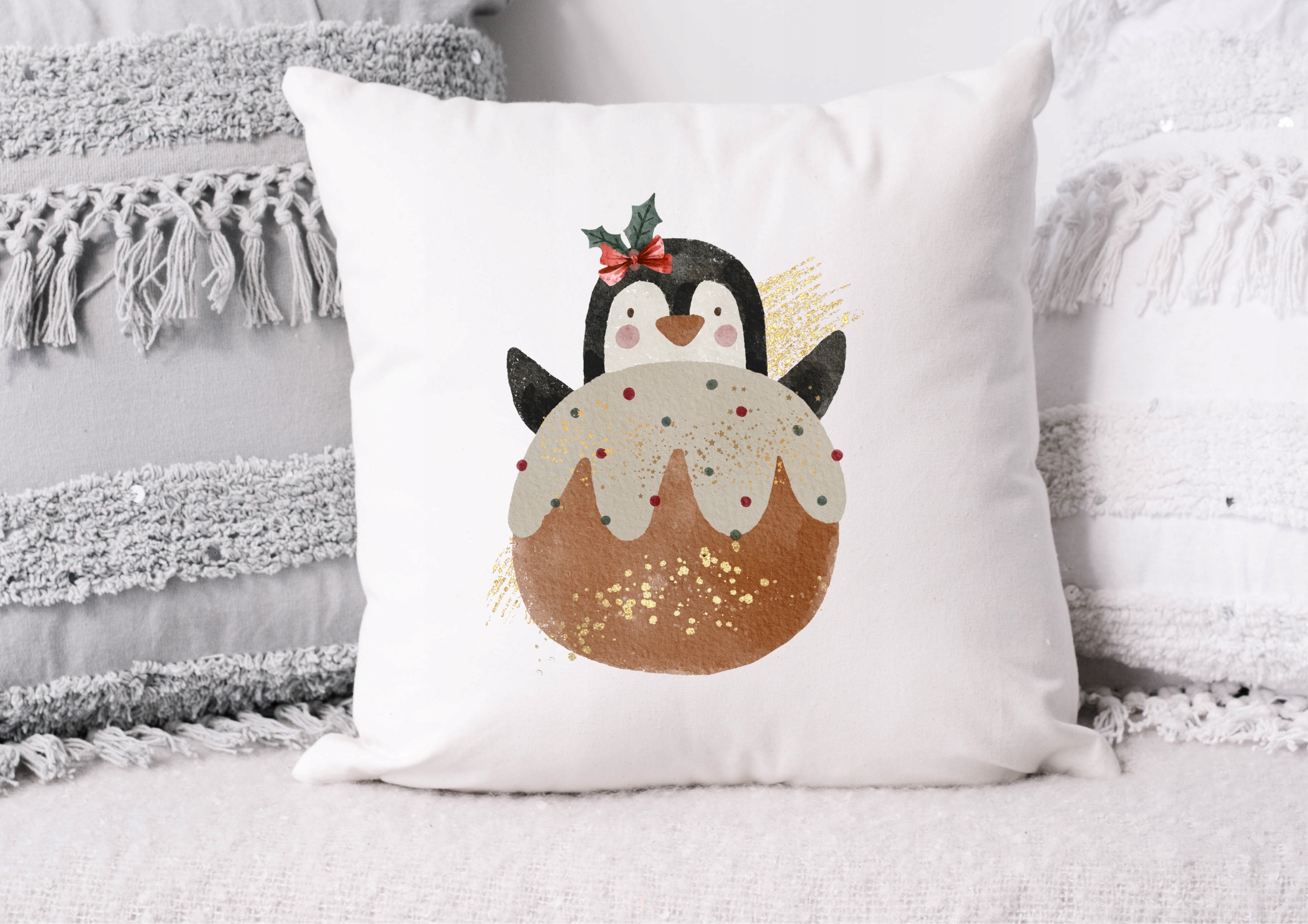 Новорічна подарункова наволочка з пінгвіном