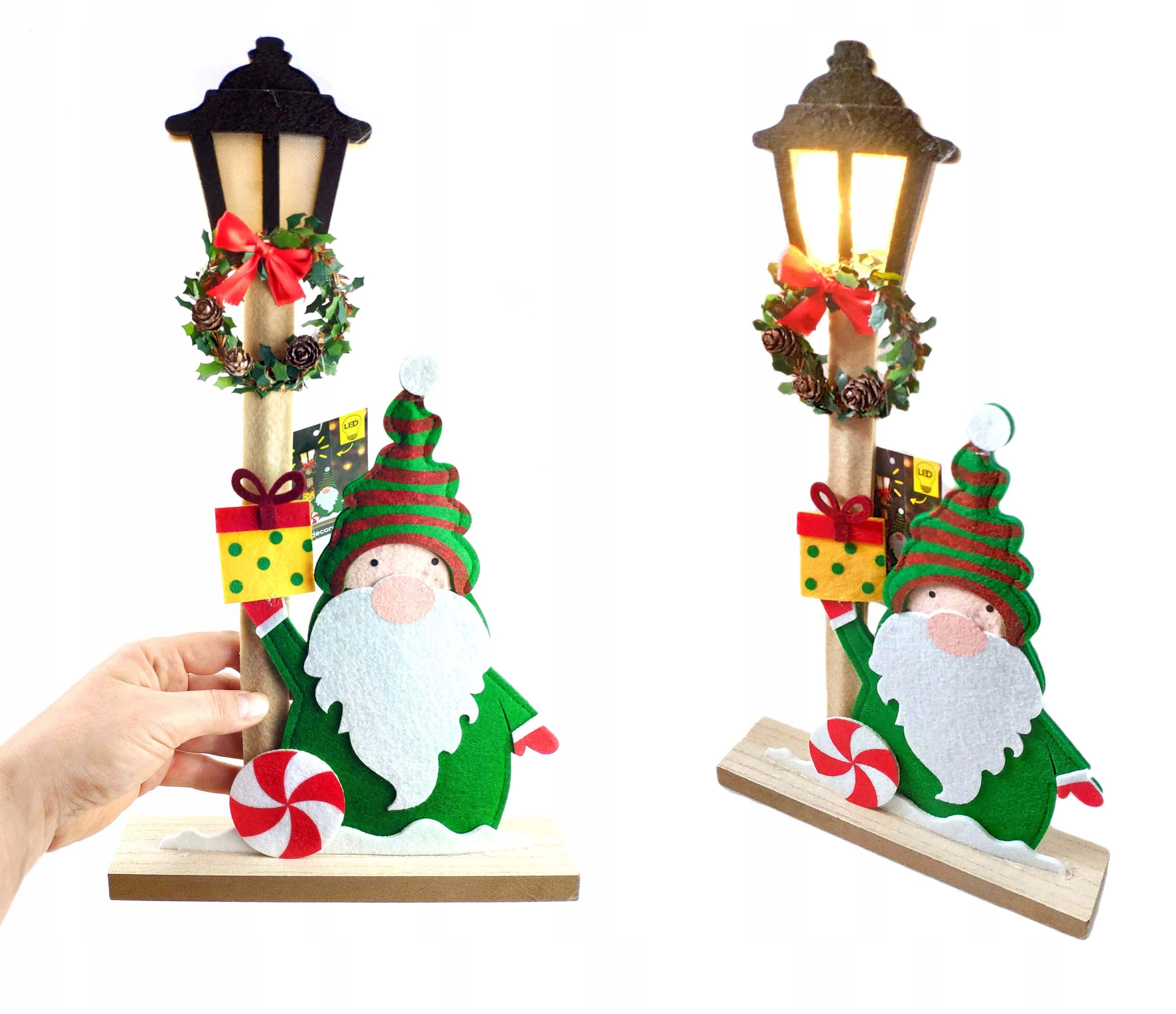 РОЖДЕСТВЕНСКОЕ УКРАШЕНИЕ LED, фетр и дерево, мотив эльфа