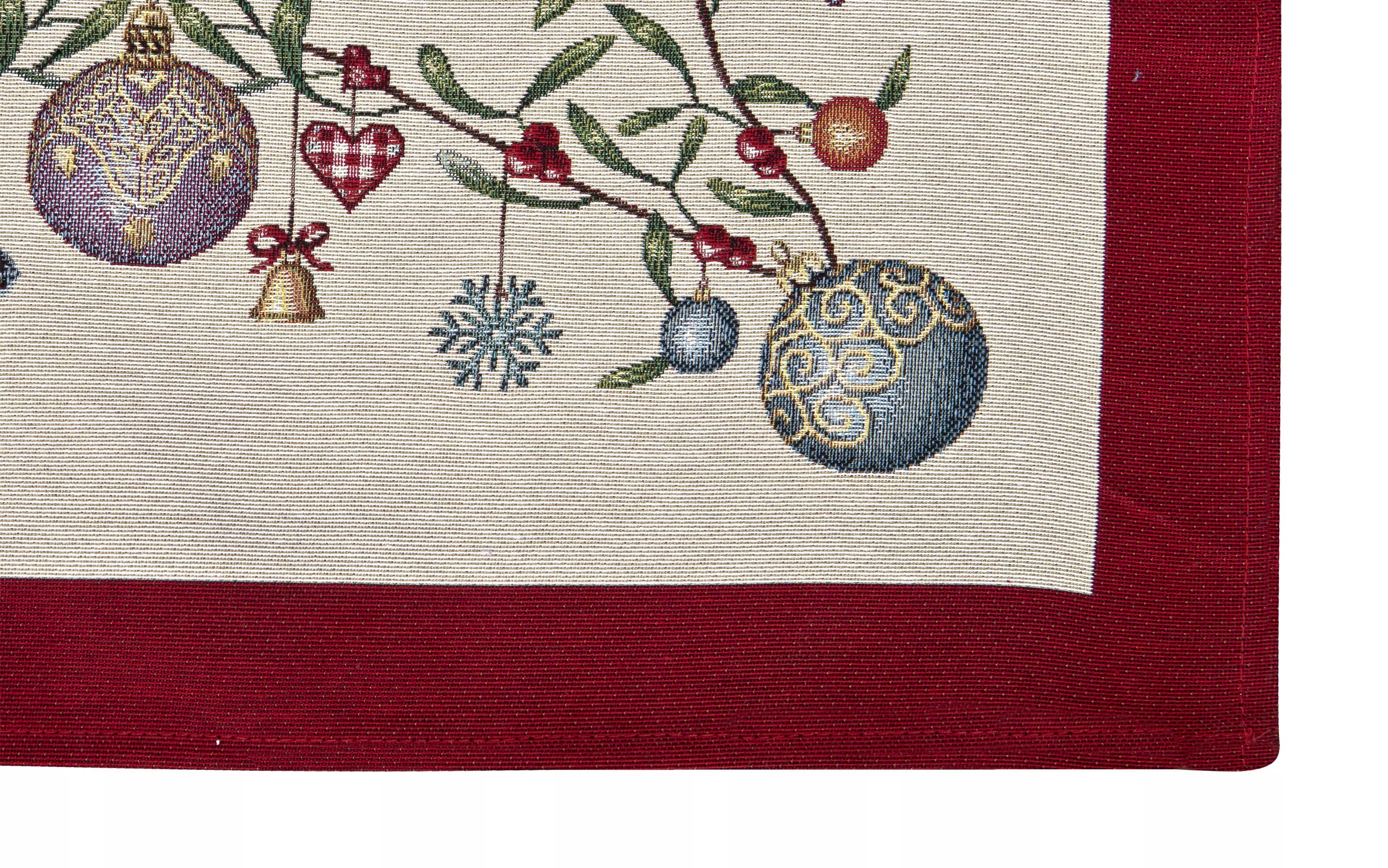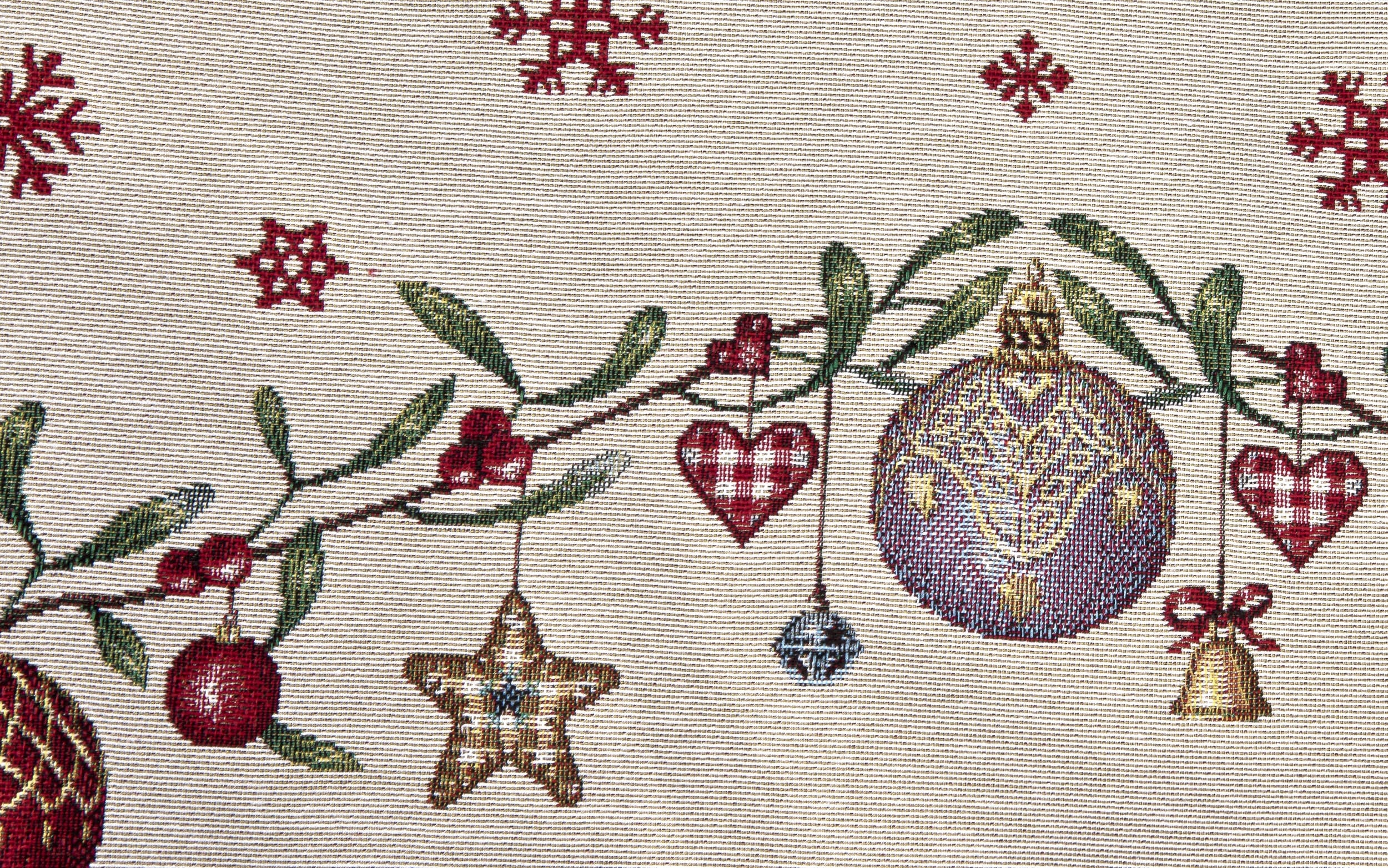 Рождественская гобеленовая скатерть с фенечками и мотивом омелы, 137х240 см Runner 171