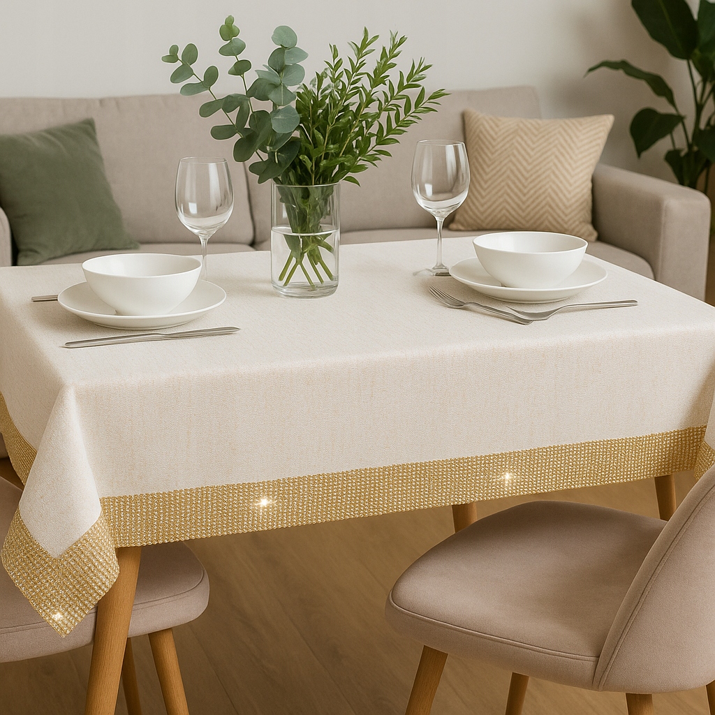 ✔️Декоративная полоска из цирконов – блестящая отделка вокруг скатерти придает элегантность и изысканность