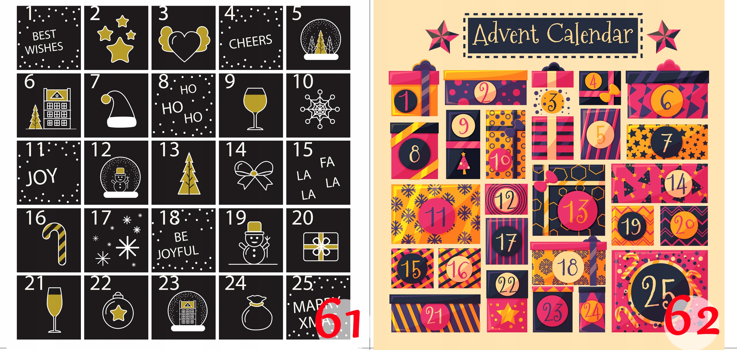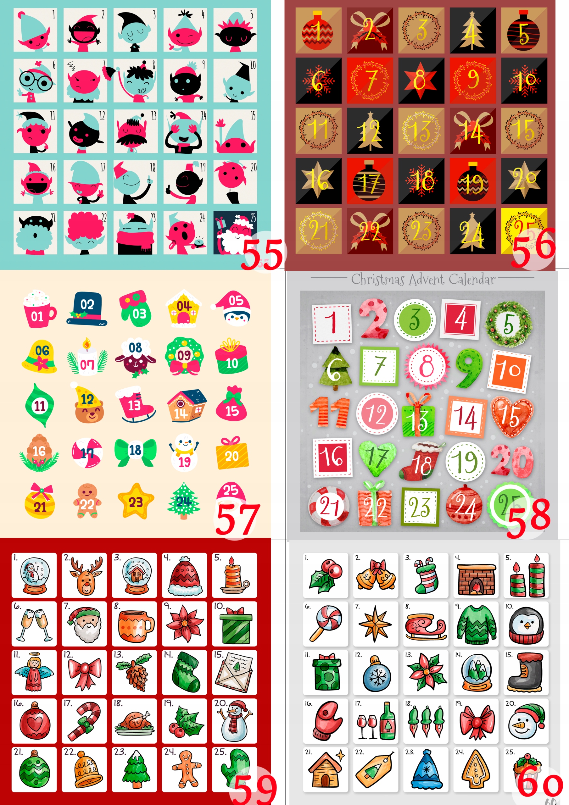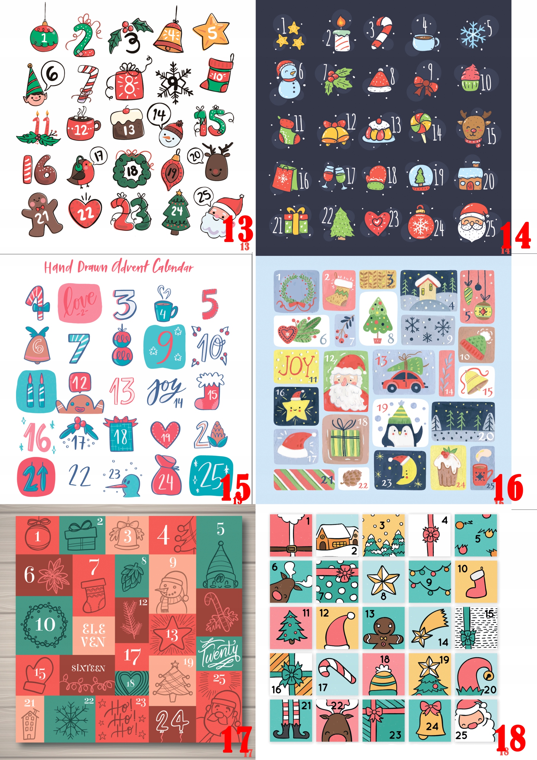Новорічні ЕКО пакети + наклейки 25 шт Викрійки адвент календаря