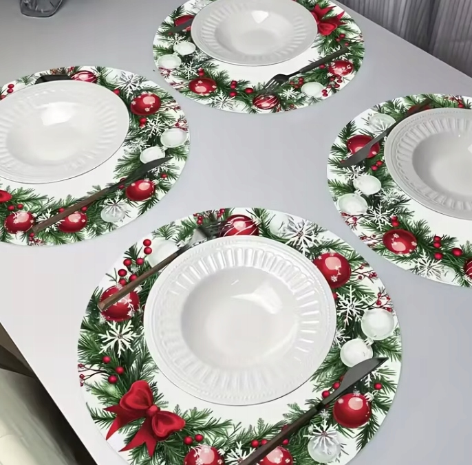 Набор из 4 круглых рождественских салфеток — идеальный способ придать вашему столу уникальный характер. Они идеально подходят для семейных встреч, рождественского ужина или украшения зимнего интерьера.