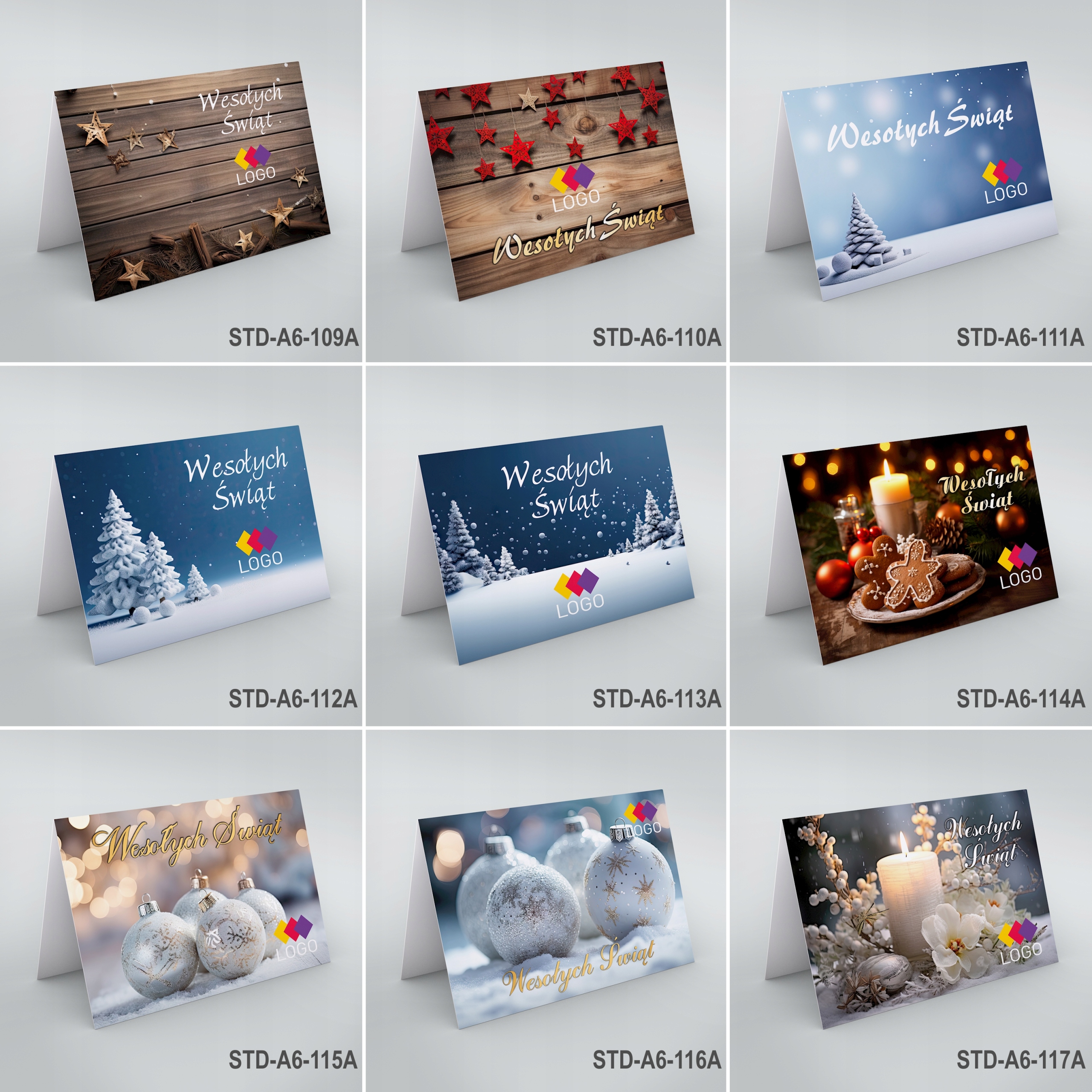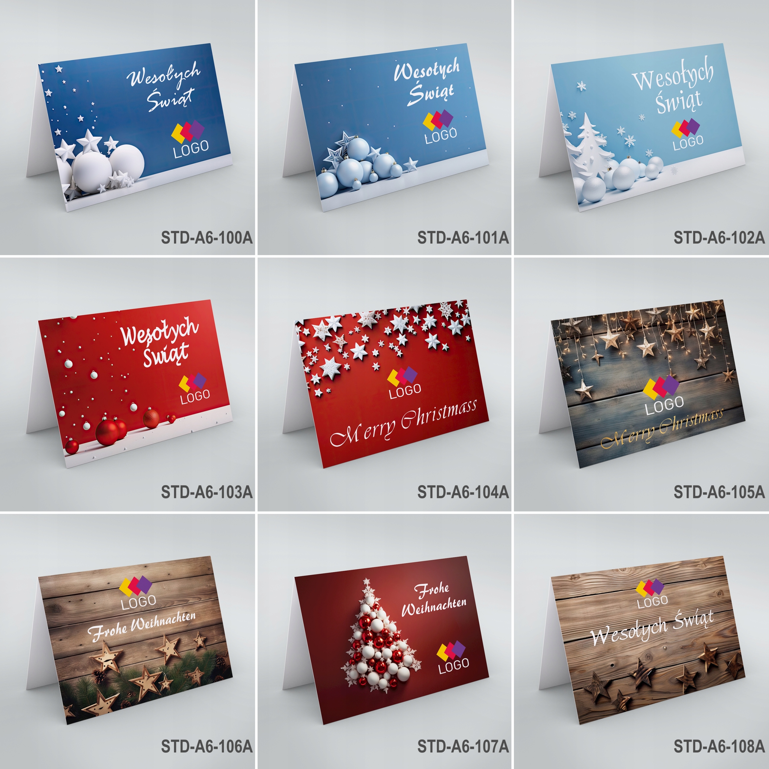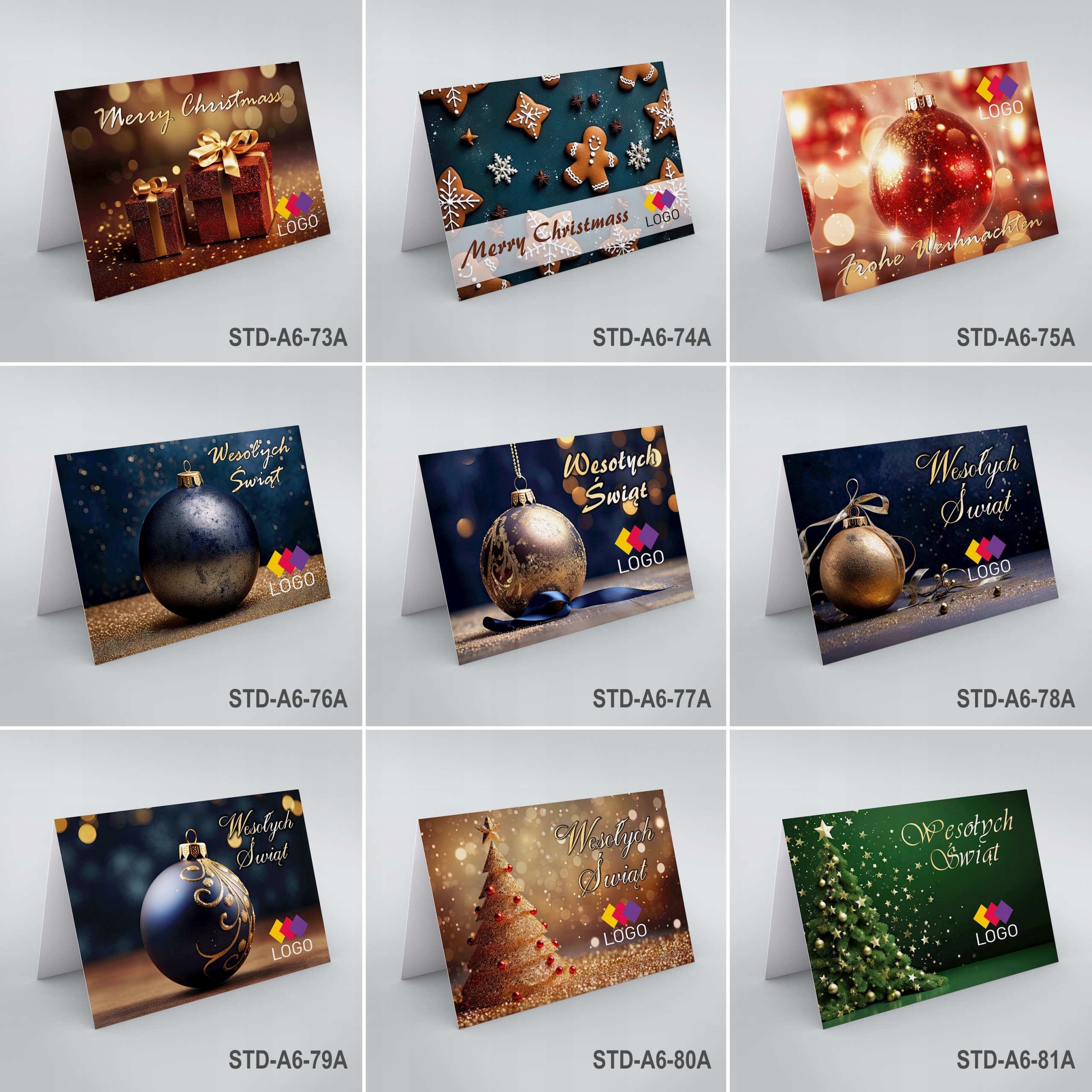 Рождественские открытки для компаний, бизнеса, из стандартной коллекции. Мы печатаем визитки только на основе наших графических шаблонов, доступных в визуализациях ниже. Размещаем на графическом шаблоне ваш логотип или название компании и содержание ваших пожеланий. Мы также можем включить отсканированную подпись, например, президента или владельца.