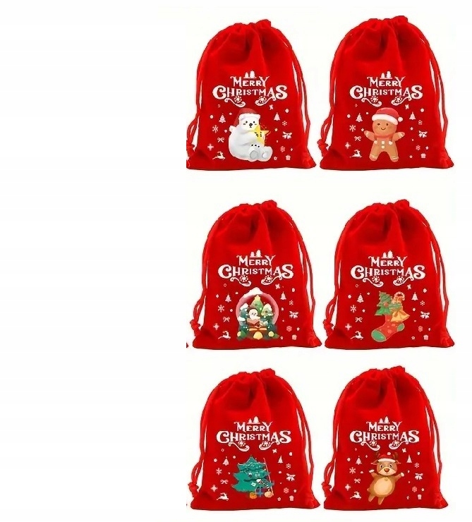 Новогодние мешочки из бархата, 6 шт. в подарок сумка 15 х 20 см.
