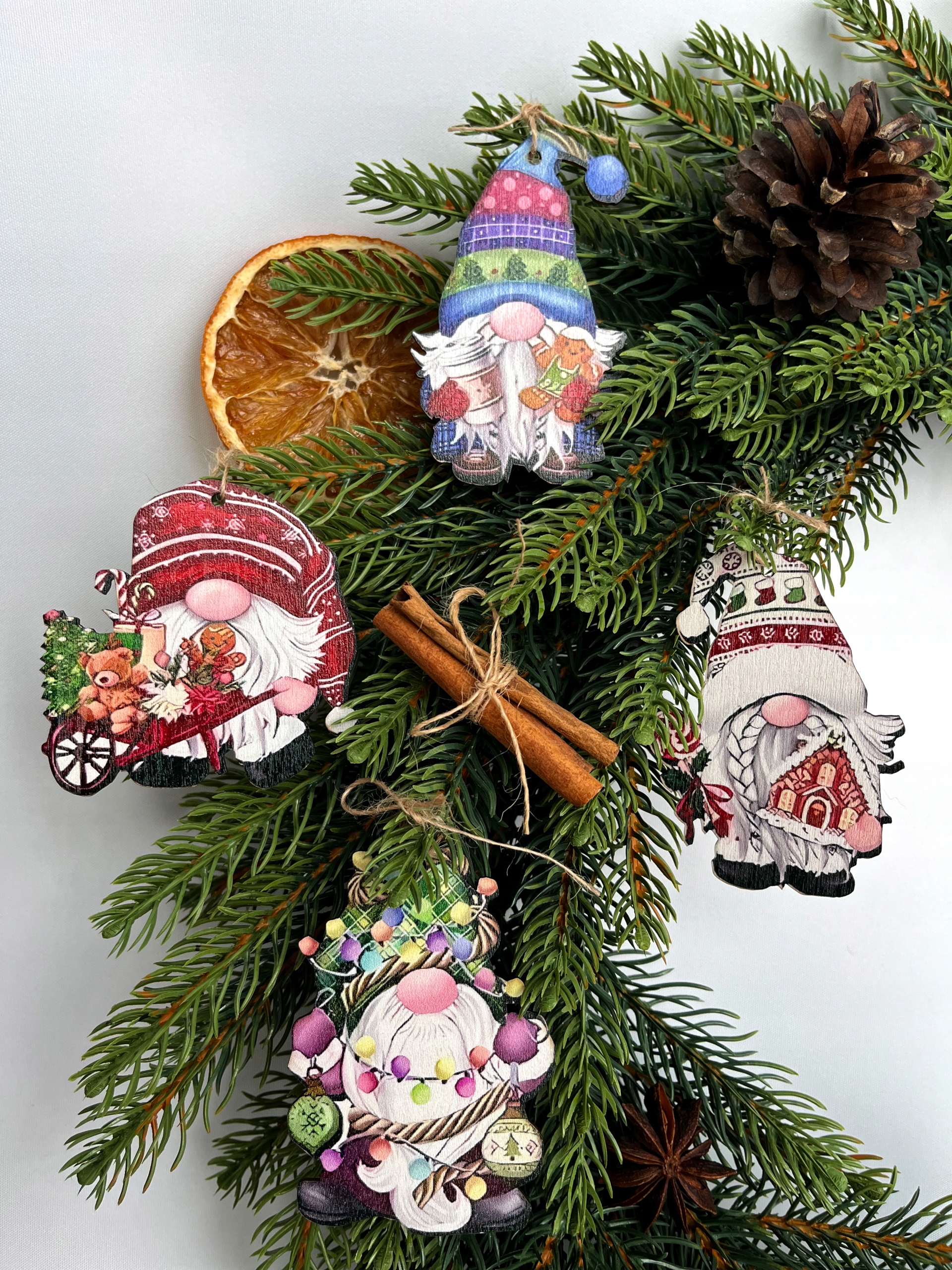 Красивые деревянные рождественские подвески, идеально подходящие для украшения подарков, посылок и елки. Набор из 5 штук размером 6х4,5 см с готовым красочным новогодним узором. Идеально подходит для рукоделия, упаковки подарков или украшения рождественского стола.