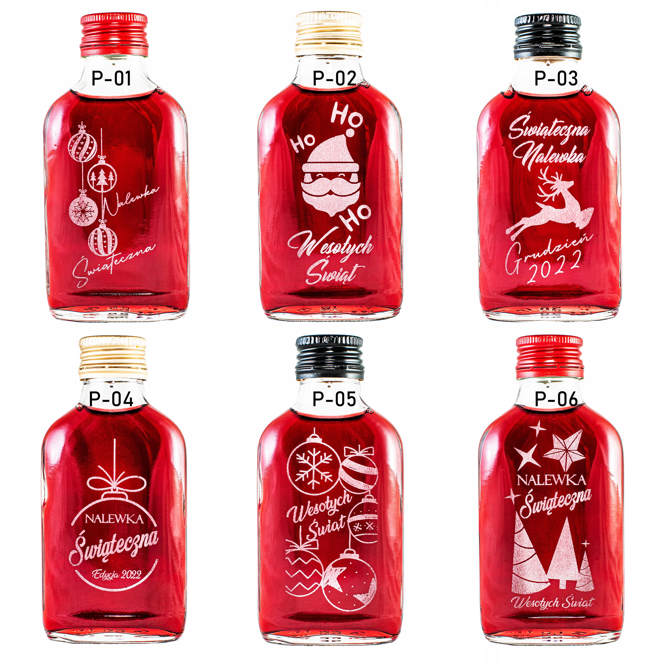 Упаковка из 5 бутылок с гравировкой для рождественских ликеров - фляжка 100 мл