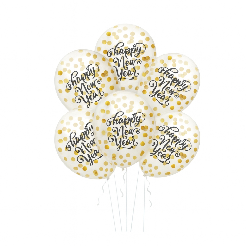 ⭐️Шарики латексные прозрачные с принтом С Новым годом с золотым конфетти 3 шт. (ок. 30см)