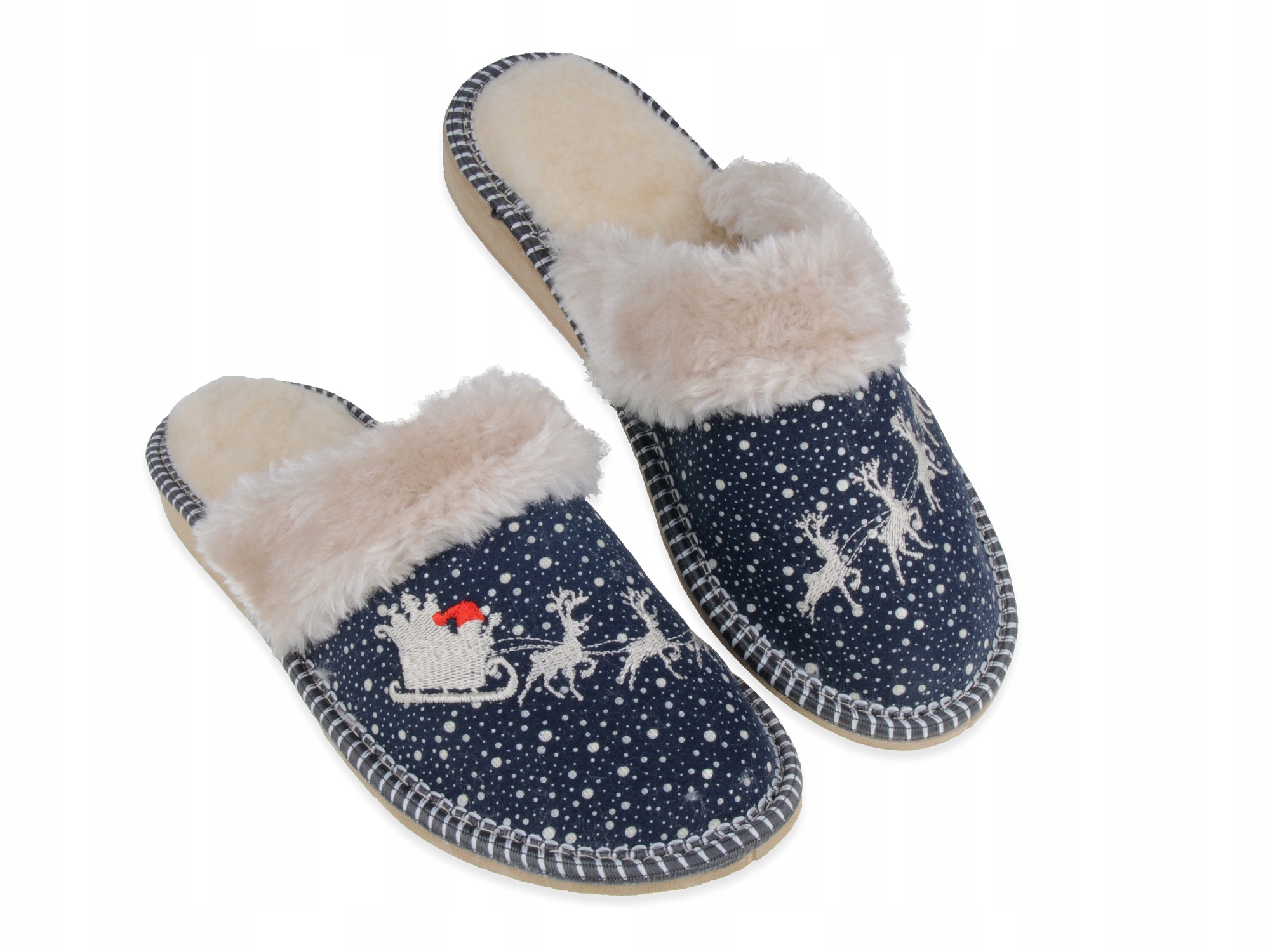 Легкие, удобные и аккуратно сшитые тапочки с вышивкой. Тапочки отлично смотрятся на ноге и могут стать прекрасным подарком Деду Морозу или на Рождество. Разработано и изготовлено в Польше.