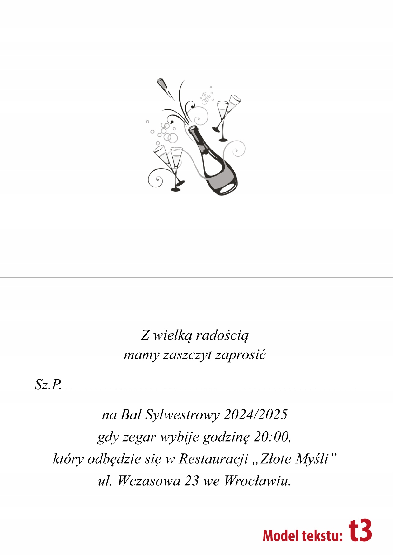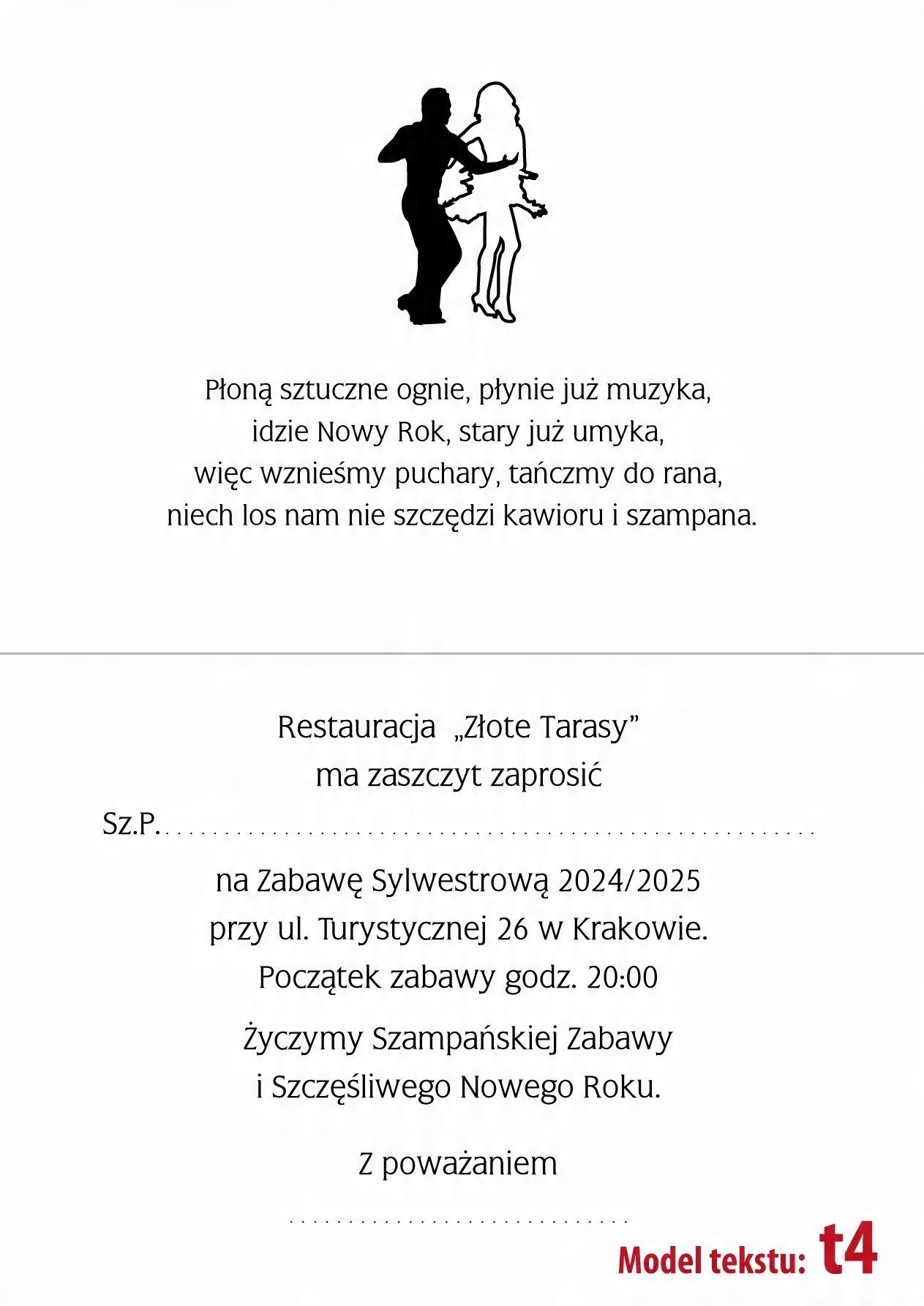 - дополнительные данные: время, место встречи Нового года, стоимость билета, группа и т. д.