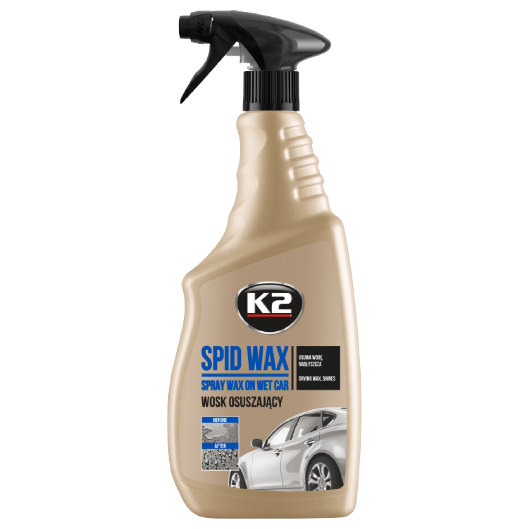 K2 Spid Wax — синтетический высыхающий воск, который используется для сушки и защиты краски. Нанесенный на вымытый кузов, он создает на краске тонкий гидрофобный слой, который отталкивает воду и заставляет ее стекать – эффект самовысыхания краски.